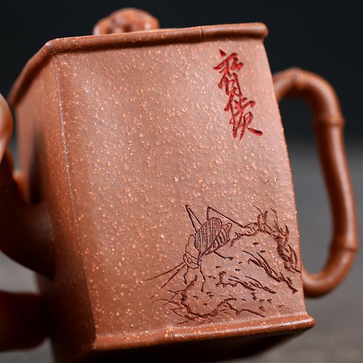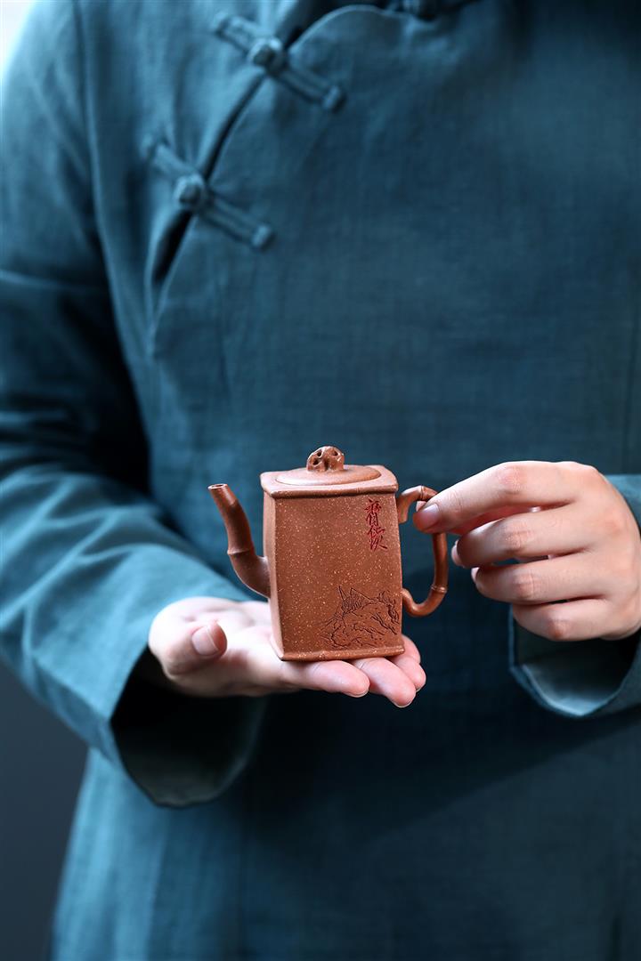 【泥料特點】砂土氣重,似淳實農民,日久使用,漸露鋒芒,養成變化,溫潤莊重。紫砂是壹種雙重氣孔結構的多孔性材質,氣孔微細,密度高。用紫砂壺沏茶,不失原味,且香不渙散,得茶之真香真味。紫砂使用越久,壺身色澤越發光亮照人,氣韻溫雅。紫砂壺長久使用器身會因撫摸擦拭,變得越發溫潤光澤。