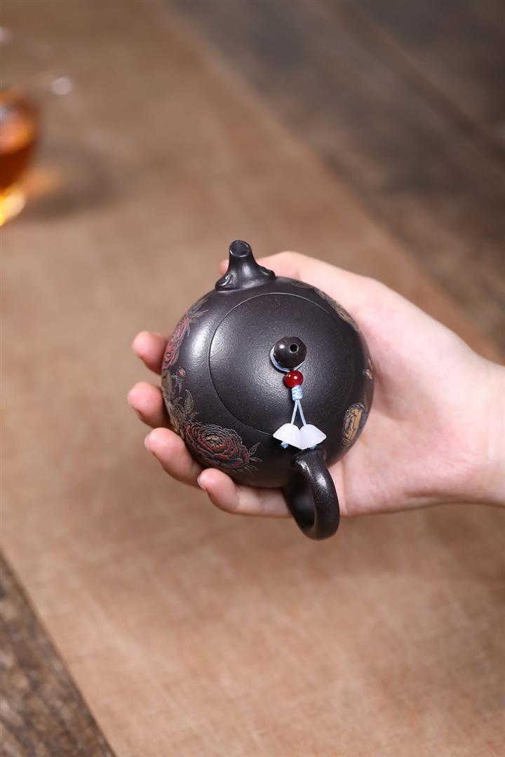 【作品介紹】此款壺形線條流暢,壺把,壺嘴,壺身壹氣呵成栩栩如生,是收藏把玩的好壺,泥料色澤古樸典雅,日久使用,漸露鋒芒,養成變化快,溫潤莊重,用其泡茶,使用的年代久,壺身就溫潤,泡出來的茶湯也就醇郁芳馨。