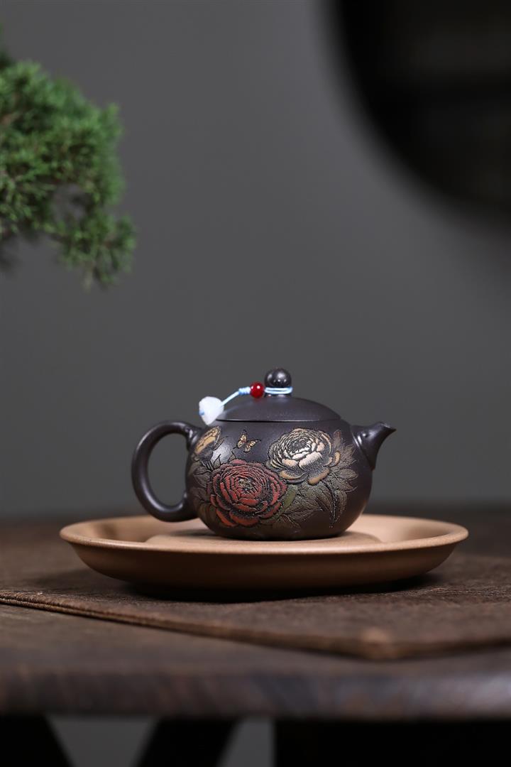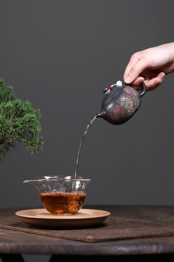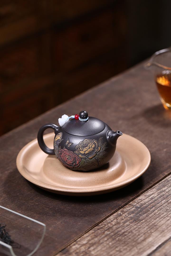 【泥料特點】砂土氣重,似淳實農民,日久使用,漸露鋒芒,養成變化,溫潤莊重。紫砂是壹種雙重氣孔結構的多孔性材質,氣孔微細,密度高。用紫砂壺沏茶,不失原味,且香不渙散,得茶之真香真味。紫砂使用越久,壺身色澤越發光亮照人,氣韻溫雅。紫砂壺長久使用器身會因撫摸擦拭,變得越發溫潤光澤。