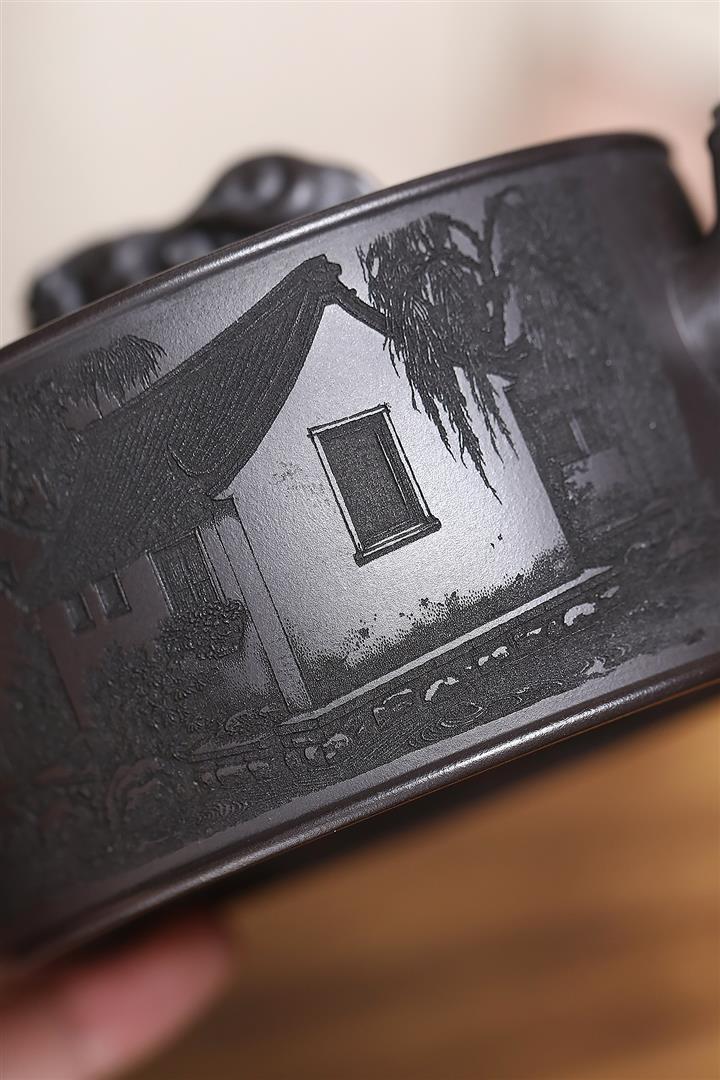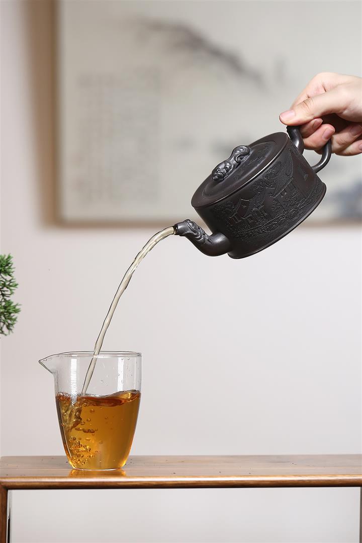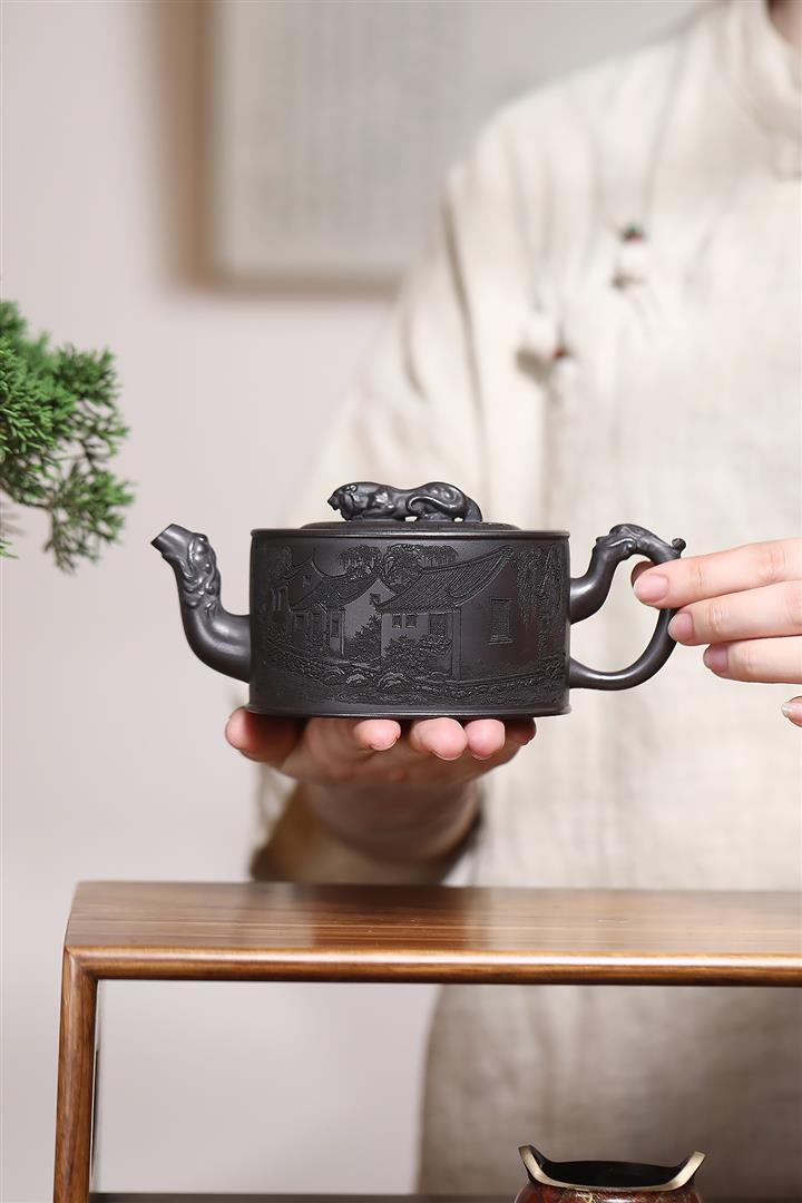 【作品介紹】此款壺形線條流暢,壺把,壺嘴,壺身壹氣呵成栩栩如生,是收藏把玩的好壺,泥料色澤古樸典雅,日久使用,漸露鋒芒,養成變化快,溫潤莊重,用其泡茶,使用的年代久,壺身就溫潤,泡出來的茶湯也就醇郁芳馨。