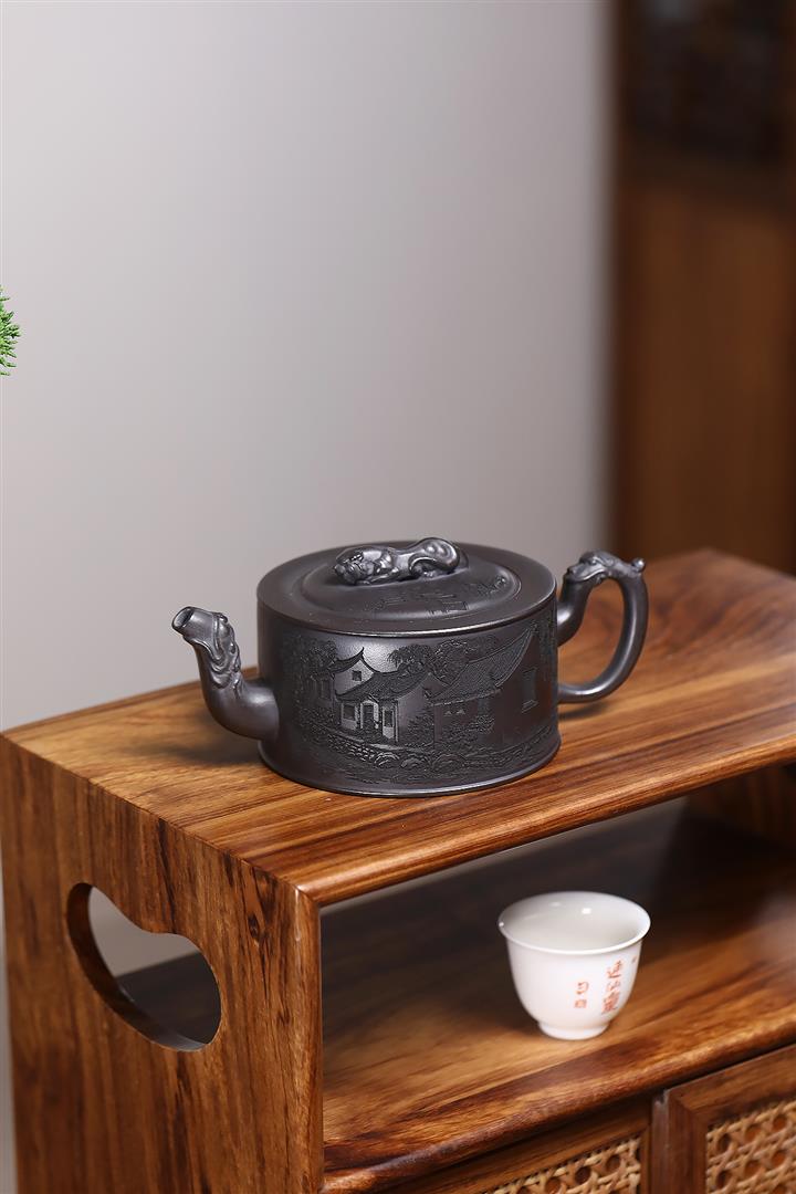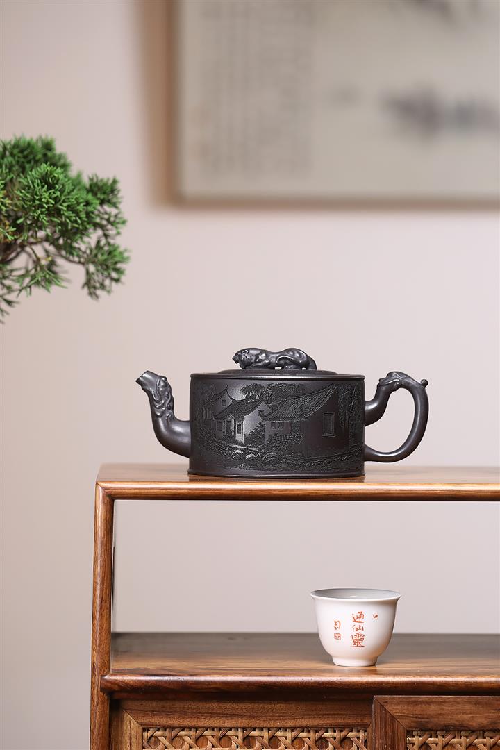 原礦玄鐵石黃臥虎藏龍壺POT7891