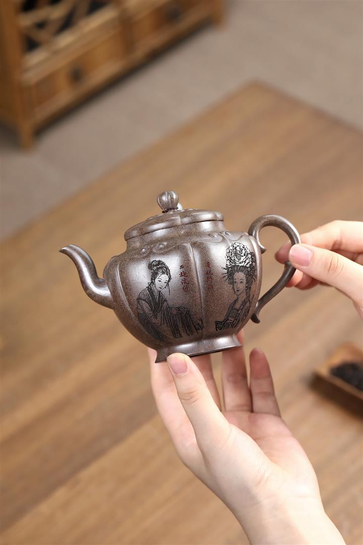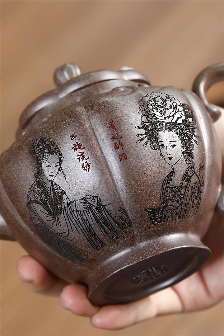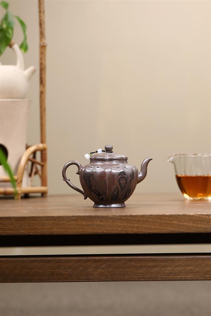 【作品介紹】此款壺形線條流暢,壺把,壺嘴,壺身壹氣呵成栩栩如生,是收藏把玩的好壺,泥料色澤古樸典雅,日久使用,漸露鋒芒,養成變化快,溫潤莊重,用其泡茶,使用的年代久,壺身就溫潤,泡出來的茶湯也就醇郁芳馨。