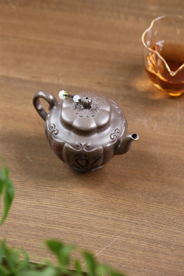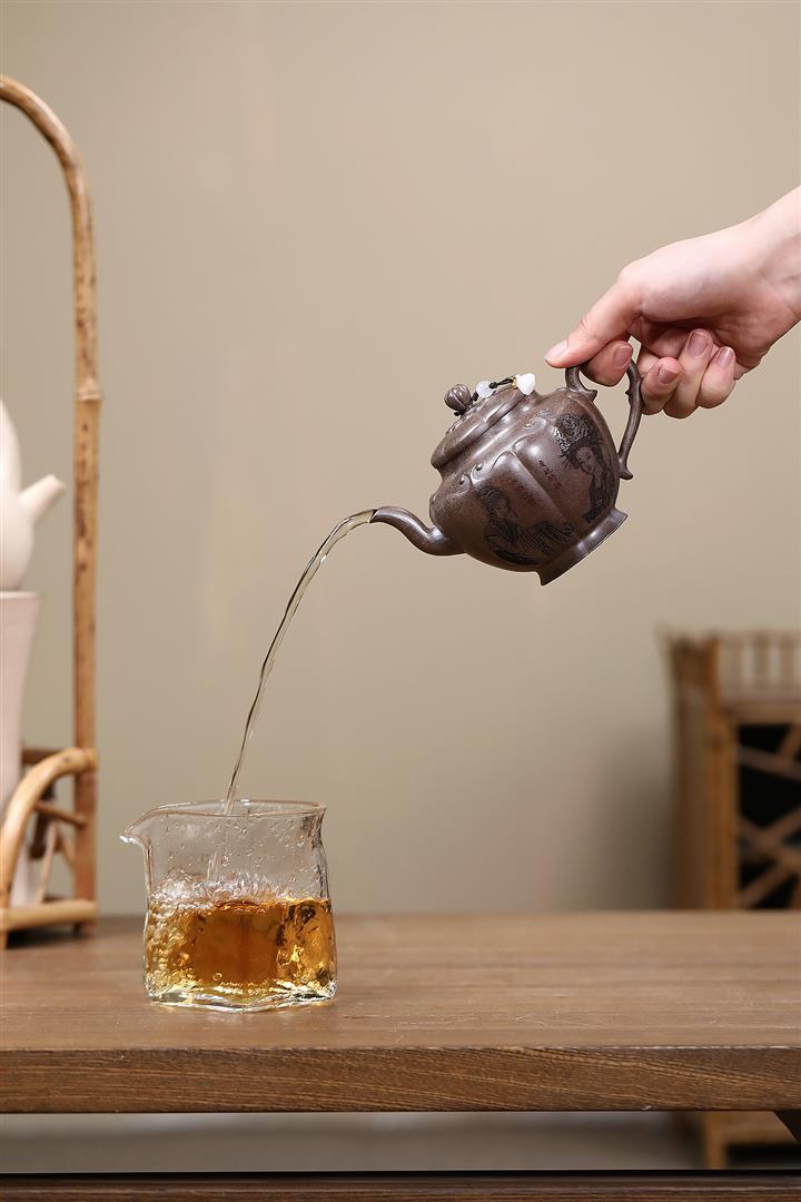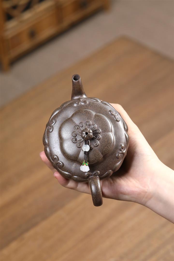 【泥料特點】砂土氣重,似淳實農民,日久使用,漸露鋒芒,養成變化,溫潤莊重。紫砂是壹種雙重氣孔結構的多孔性材質,氣孔微細,密度高。用紫砂壺沏茶,不失原味,且香不渙散,得茶之真香真味。紫砂使用越久,壺身色澤越發光亮照人,氣韻溫雅。紫砂壺長久使用器身會因撫摸擦拭,變得越發溫潤光澤。