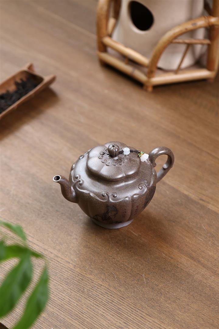 原礦紫泥雕塑福星高照茶壺POT7881