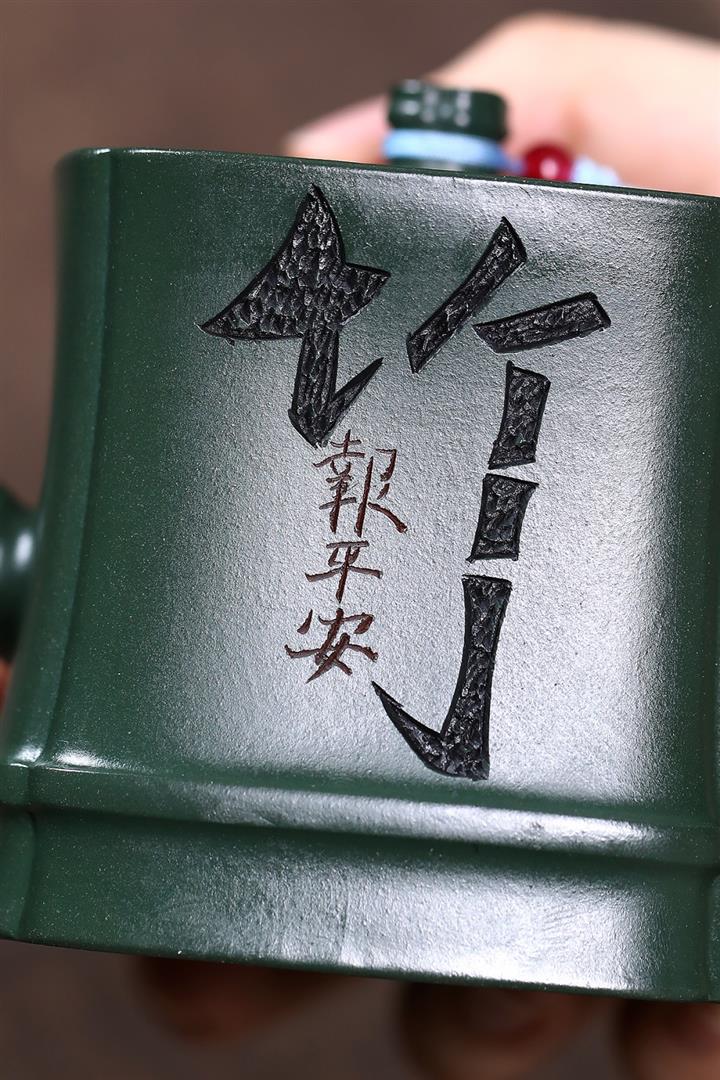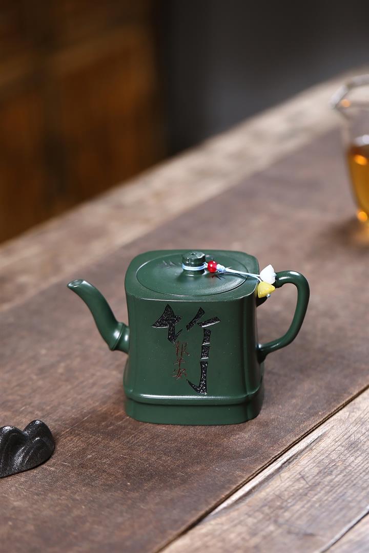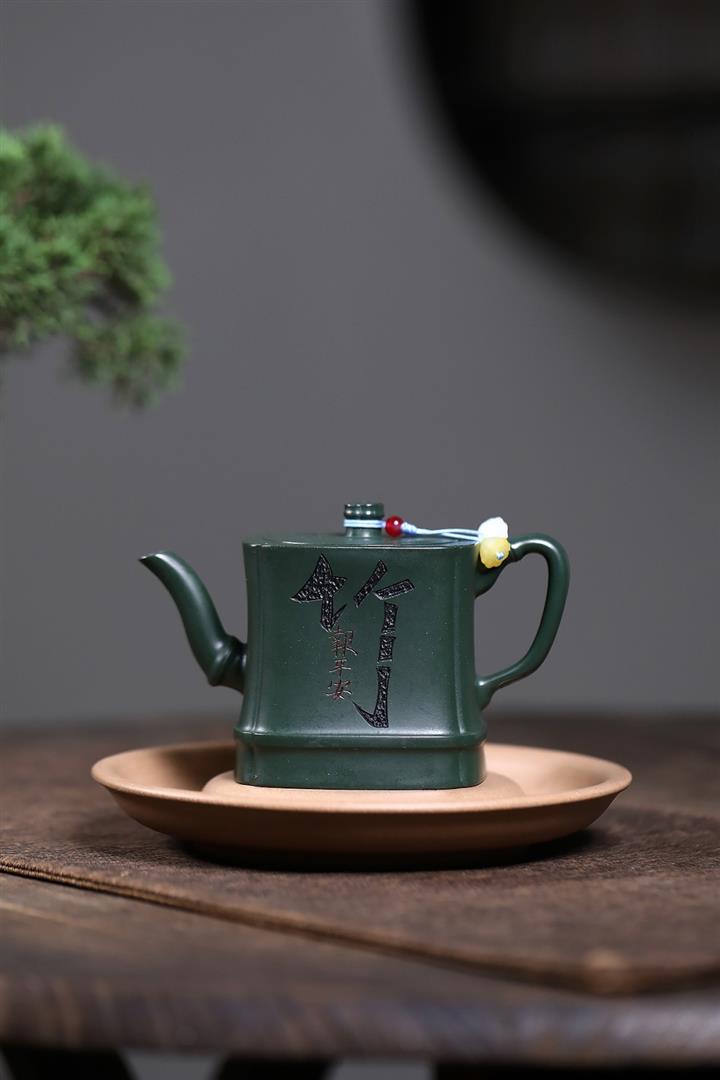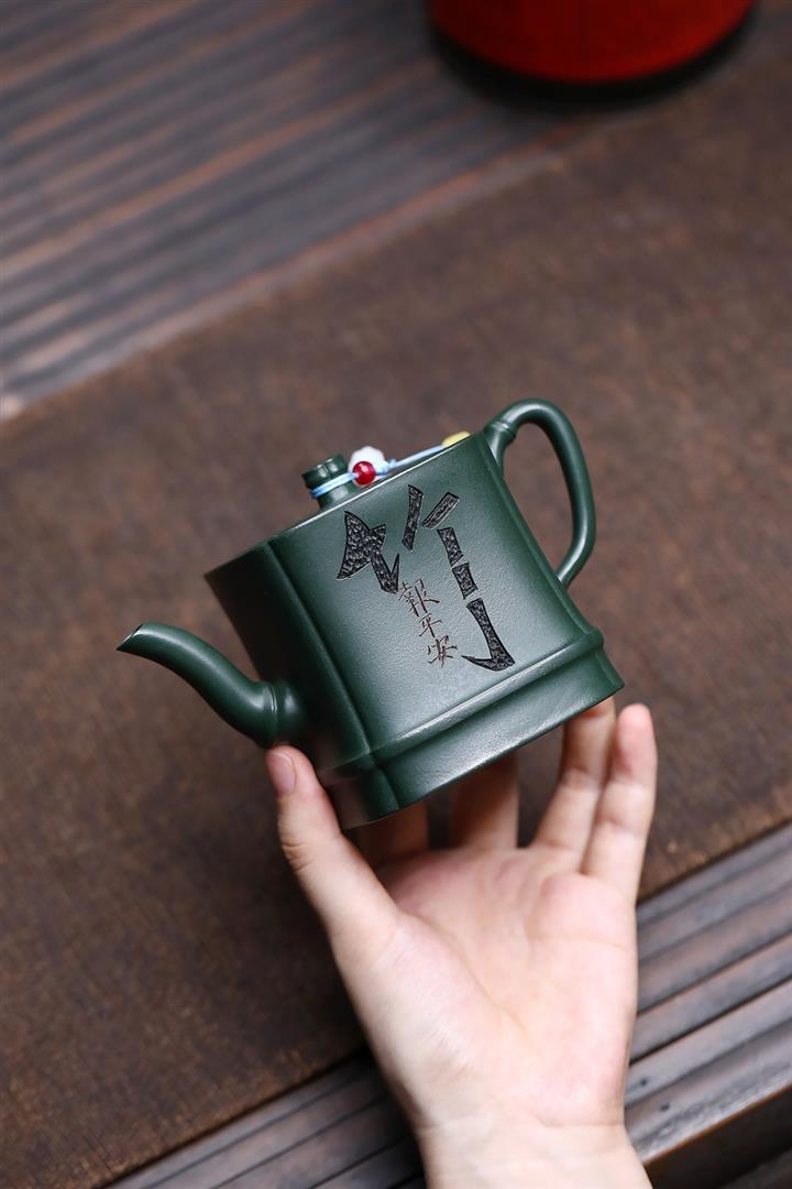 原礦綠泥琢砂竹報平安泡茶壺POT7879