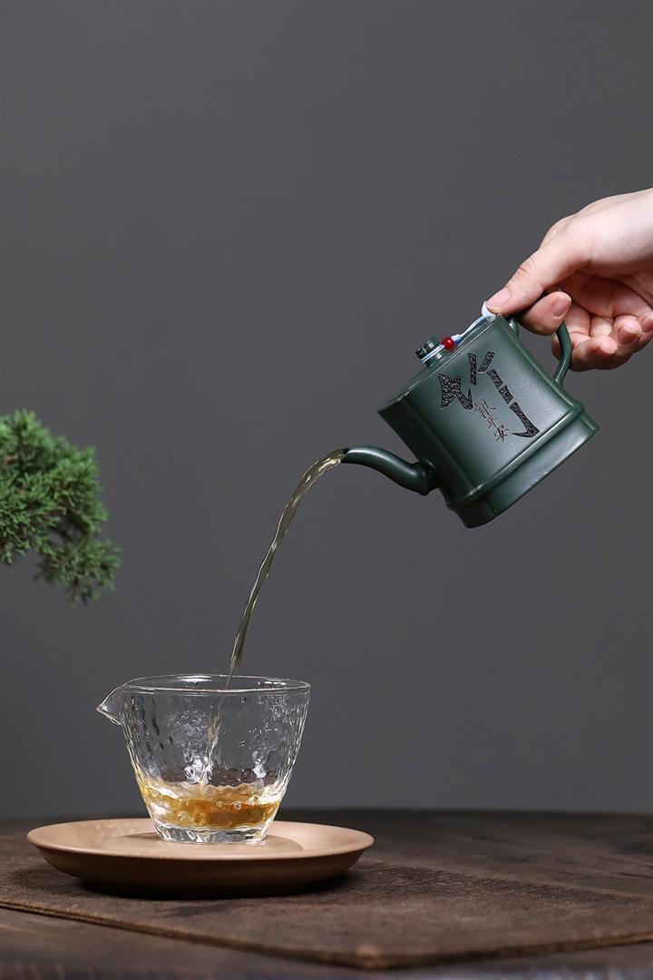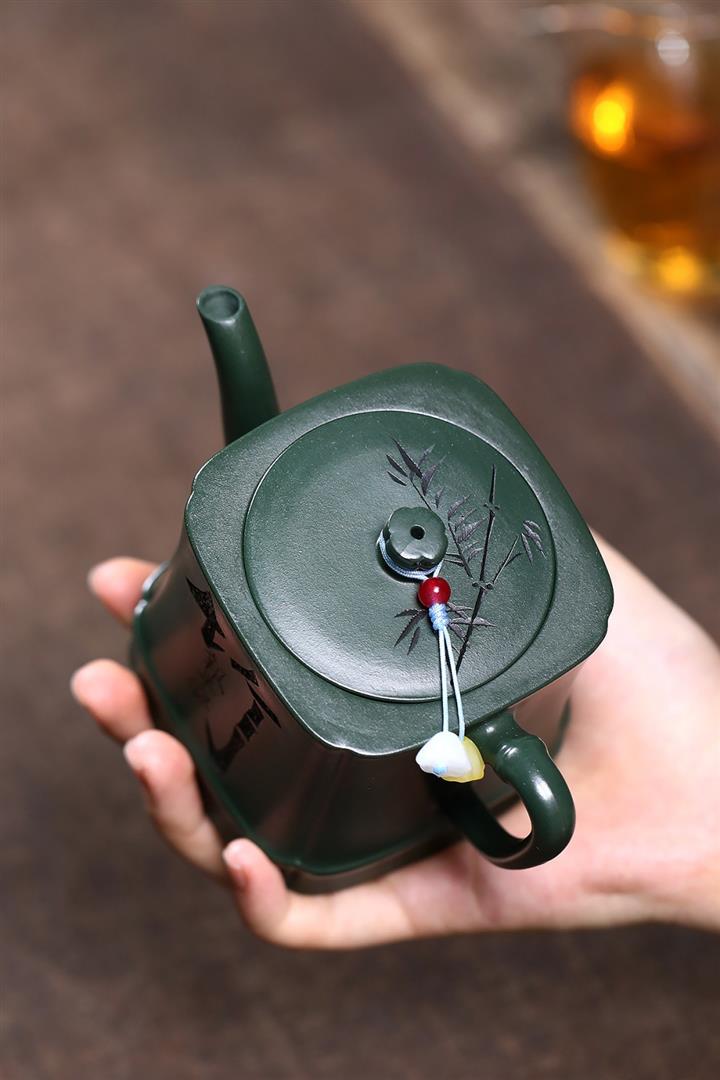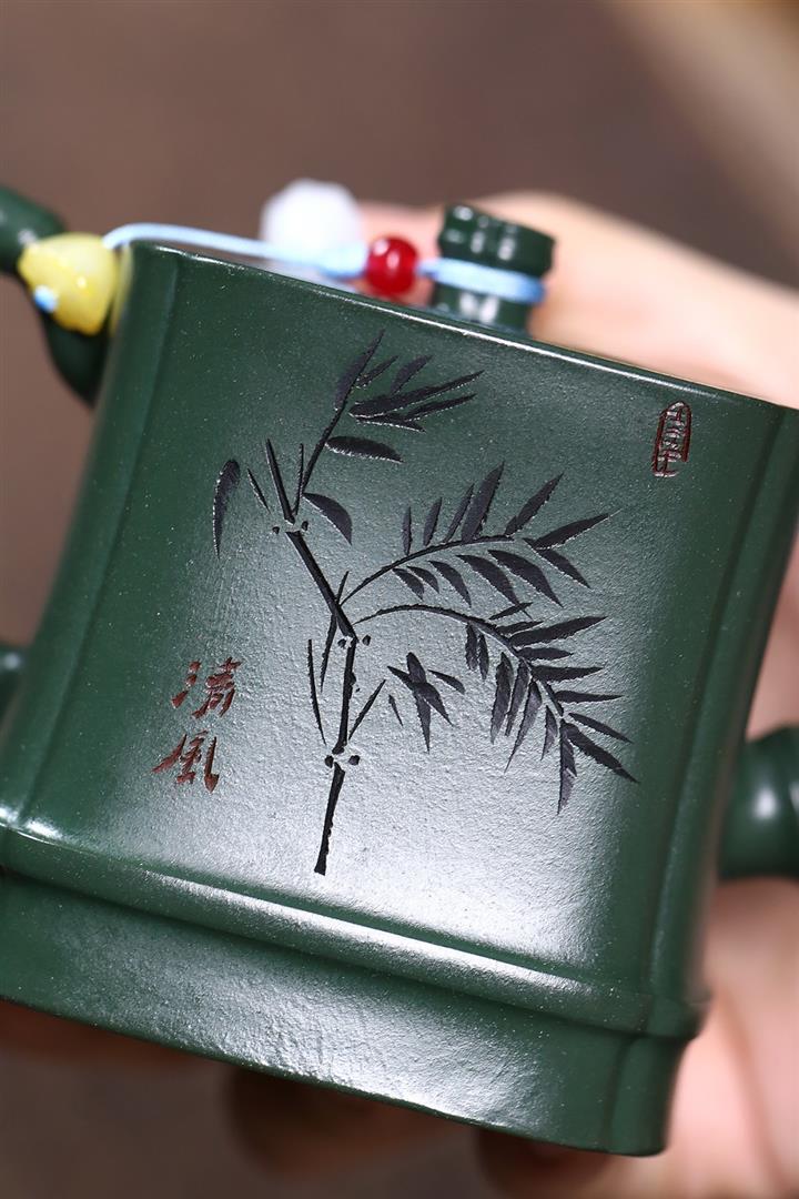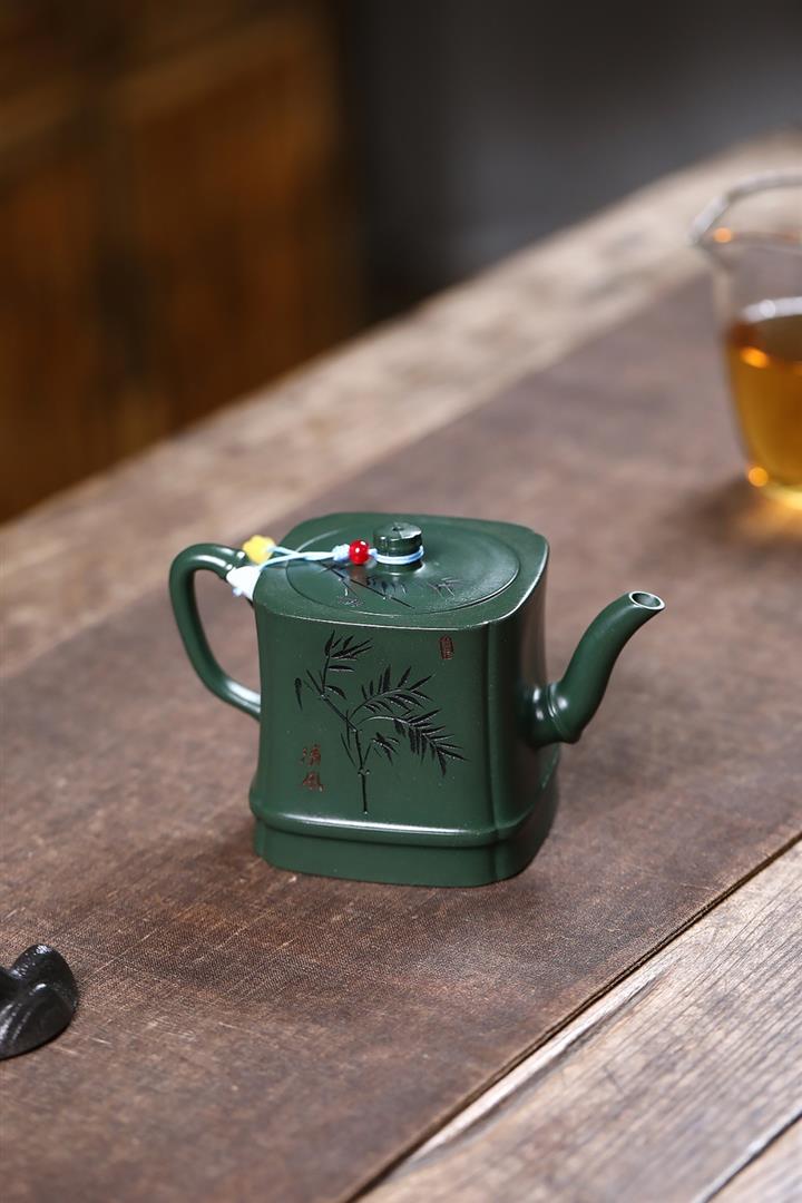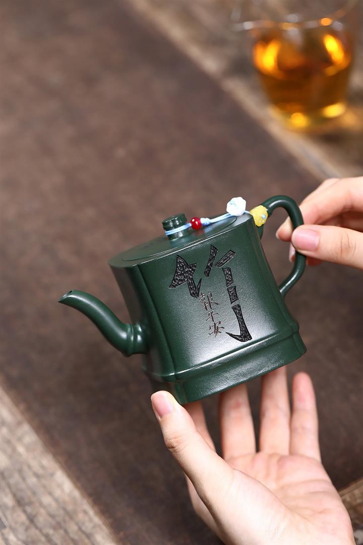 原礦綠泥琢砂竹報平安泡茶壺POT7879