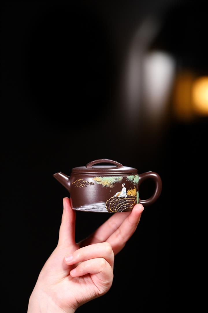 原礦豆青泥彩繪漢瓦茶壺POT7877