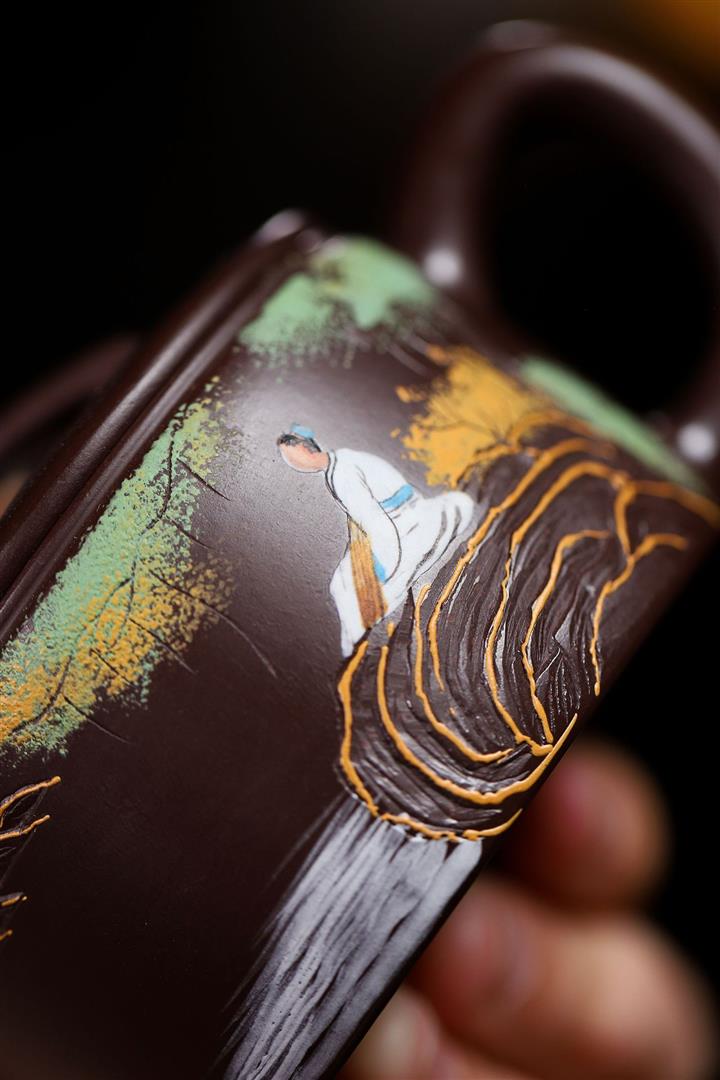 【作品介紹】此款壺形線條流暢,壺把,壺嘴,壺身壹氣呵成栩栩如生,是收藏把玩的好壺,泥料色澤古樸典雅,日久使用,漸露鋒芒,養成變化快,溫潤莊重,用其泡茶,使用的年代久,壺身就溫潤,泡出來的茶湯也就醇郁芳馨。