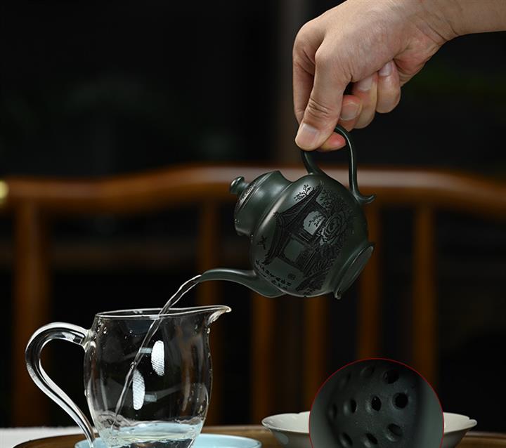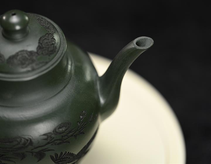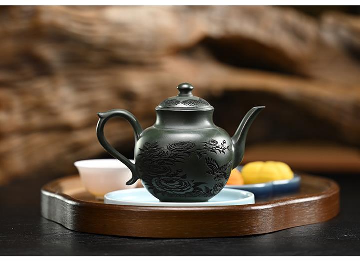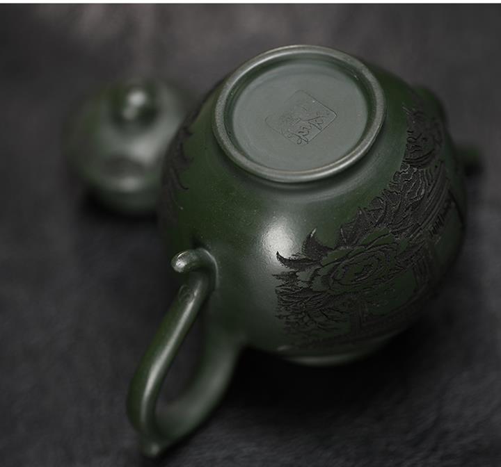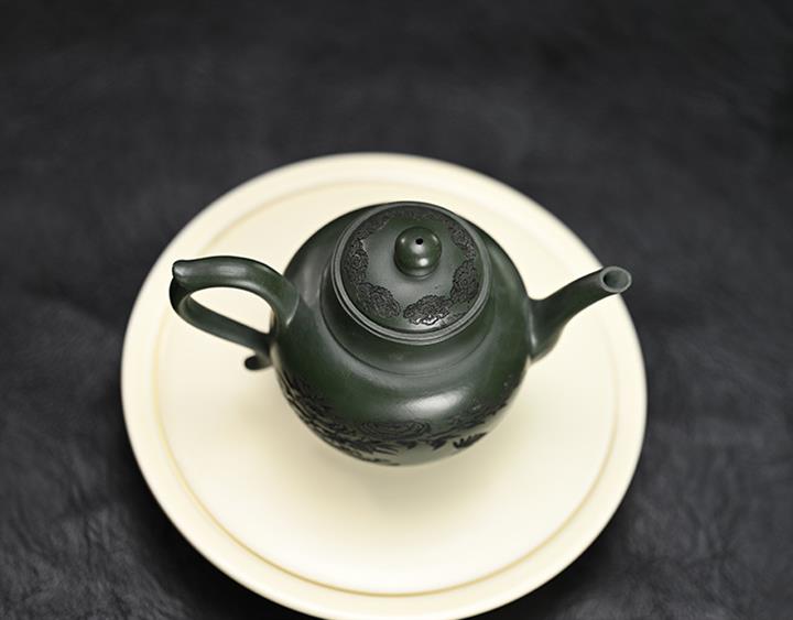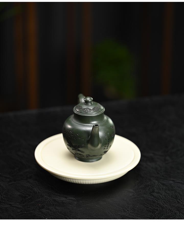 原礦綠泥刻繪掇球泡茶壺POT7865