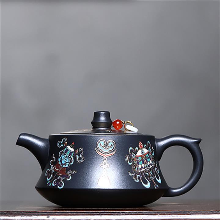 原礦玄鐵石黃琺瑯柱礎泡茶壺POT7852
