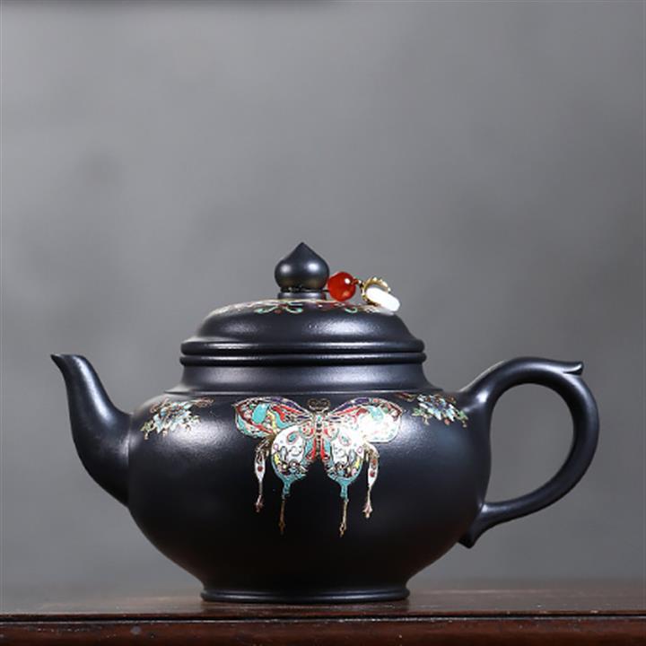 原礦玄鐵石黃琺瑯笑櫻泡茶壺POT7853