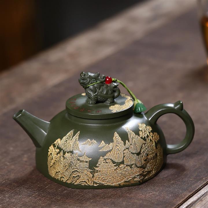 原礦綠泥觀山龍龜守茶壺POT7857