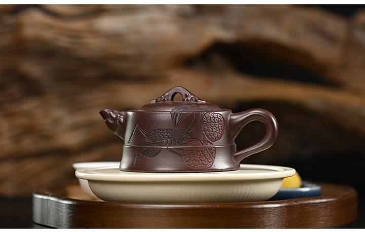 原礦紫泥刻繪龍尊泡茶壺POT7862