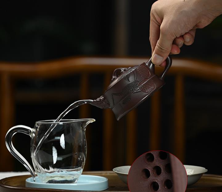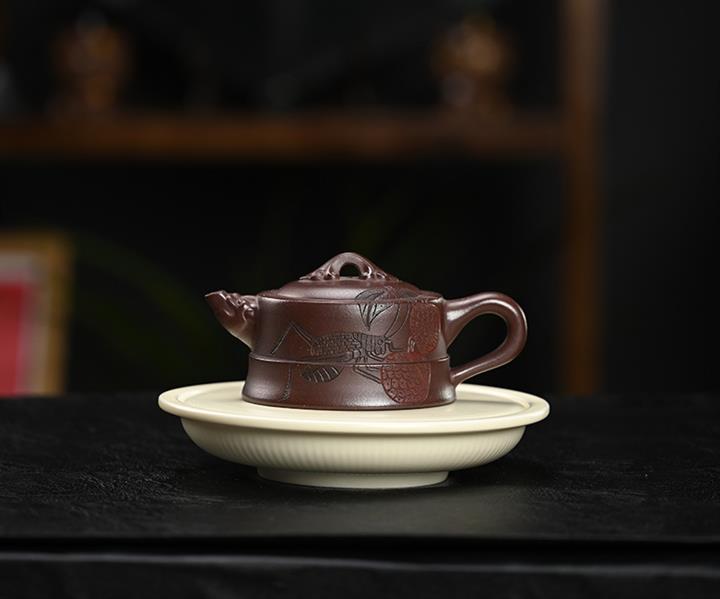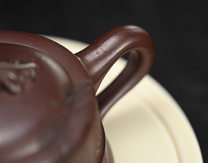 【泥料特點】砂土氣重,似淳實農民,日久使用,漸露鋒芒,養成變化,溫潤莊重。紫砂是壹種雙重氣孔結構的多孔性材質,氣孔微細,密度高。用紫砂壺沏茶,不失原味,且香不渙散,得茶之真香真味。紫砂使用越久,壺身色澤越發光亮照人,氣韻溫雅。紫砂壺長久使用器身會因撫摸擦拭,變得越發溫潤光澤。