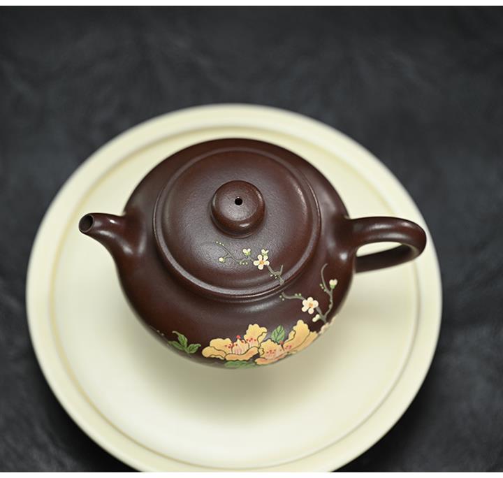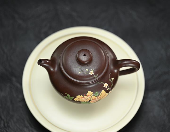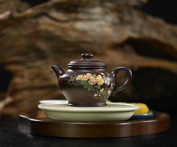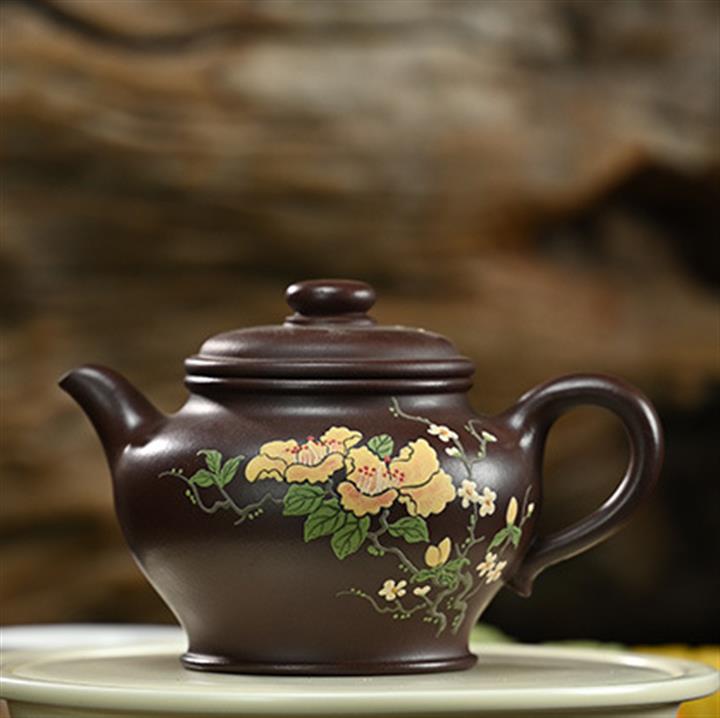 原礦玄鐵石黃琺瑯笑櫻泡茶壺POT7853