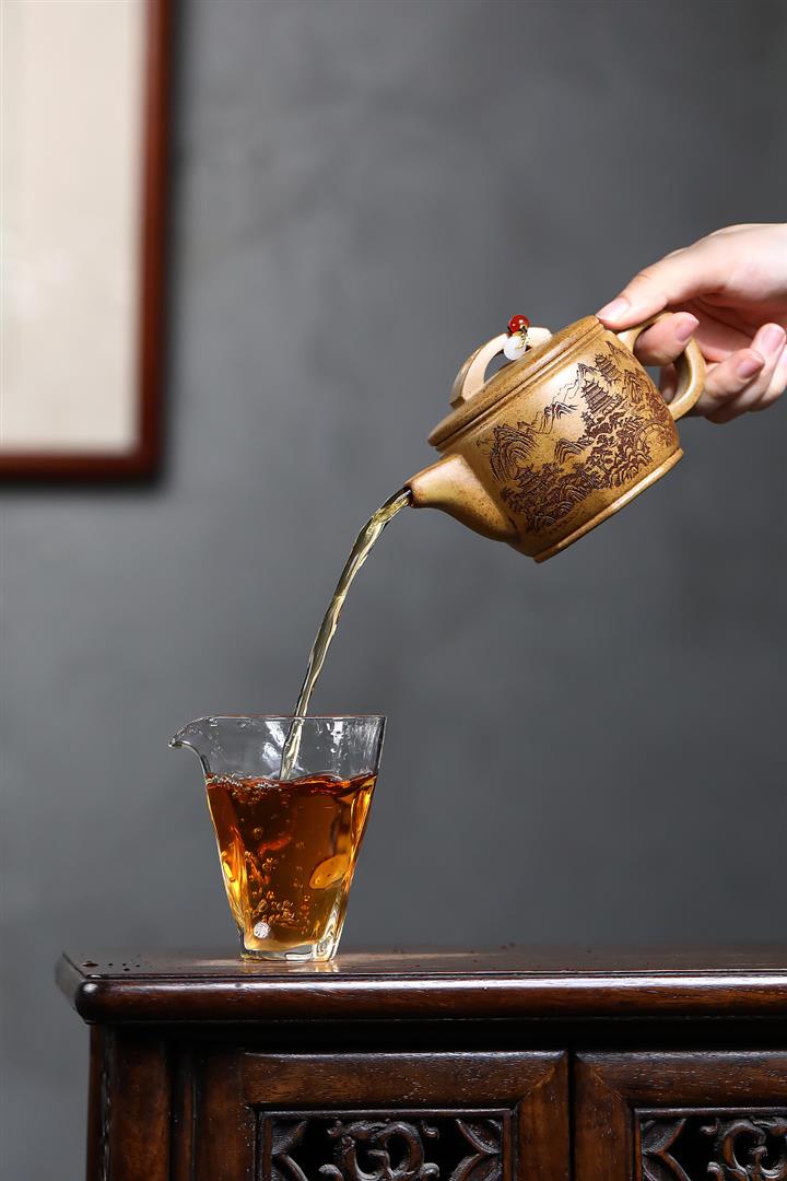 【泥料特點】砂土氣重,似淳實農民,日久使用,漸露鋒芒,養成變化,溫潤莊重。紫砂是壹種雙重氣孔結構的多孔性材質,氣孔微細,密度高。用紫砂壺沏茶,不失原味,且香不渙散,得茶之真香真味。紫砂使用越久,壺身色澤越發光亮照人,氣韻溫雅。紫砂壺長久使用器身會因撫摸擦拭,變得越發溫潤光澤。