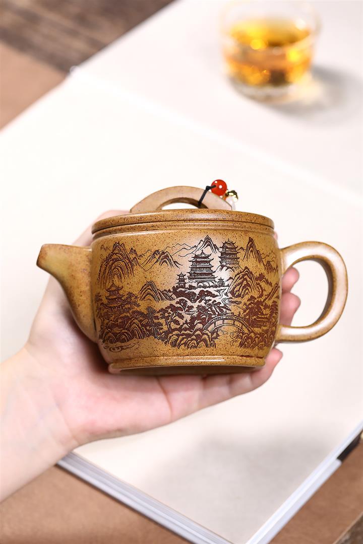 【作品介紹】此款壺形線條流暢,壺把,壺嘴,壺身壹氣呵成栩栩如生,是收藏把玩的好壺,泥料色澤古樸典雅,日久使用,漸露鋒芒,養成變化快,溫潤莊重,用其泡茶,使用的年代久,壺身就溫潤,泡出來的茶湯也就醇郁芳馨。