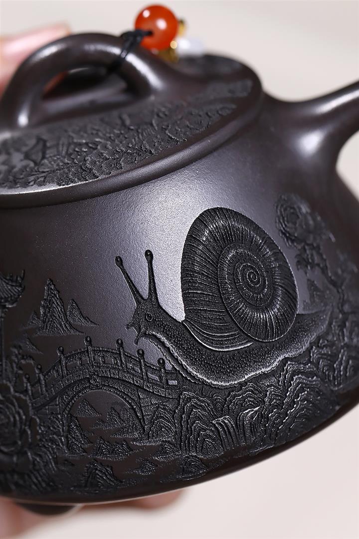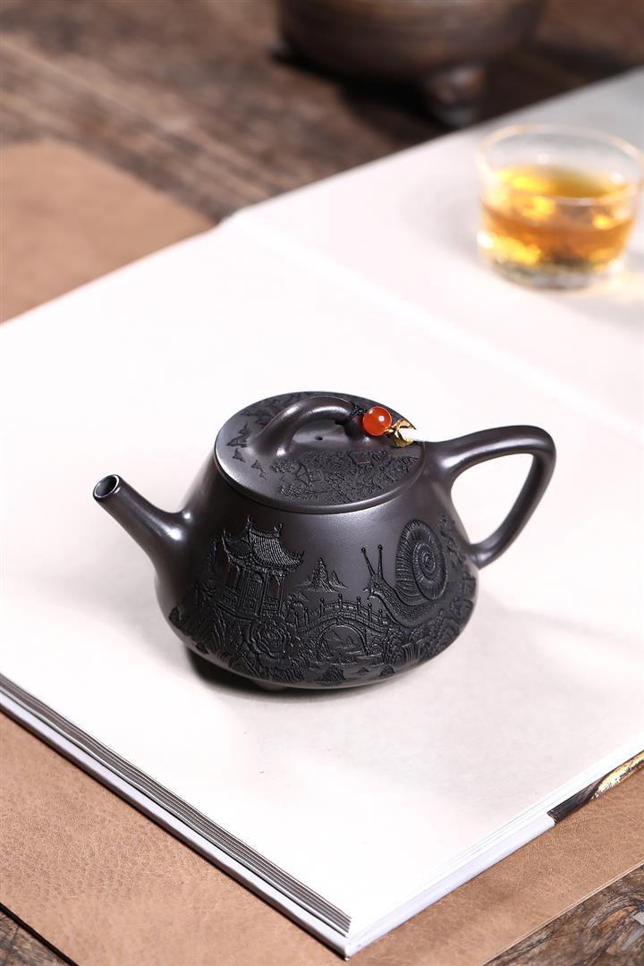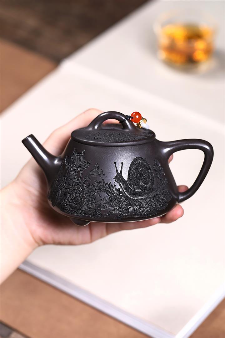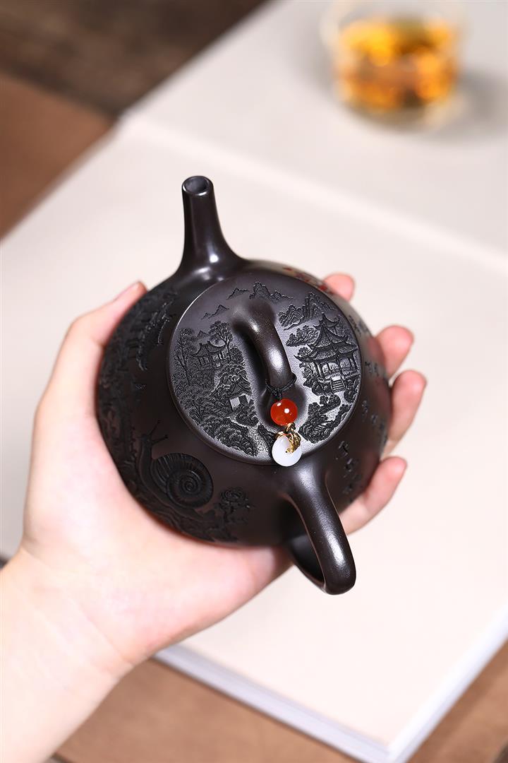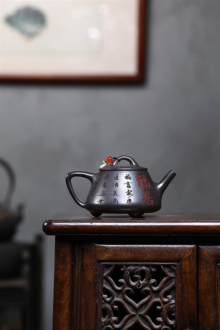 【作品介紹】此款壺形線條流暢,壺把,壺嘴,壺身壹氣呵成栩栩如生,是收藏把玩的好壺,泥料色澤古樸典雅,日久使用,漸露鋒芒,養成變化快,溫潤莊重,用其泡茶,使用的年代久,壺身就溫潤,泡出來的茶湯也就醇郁芳馨。