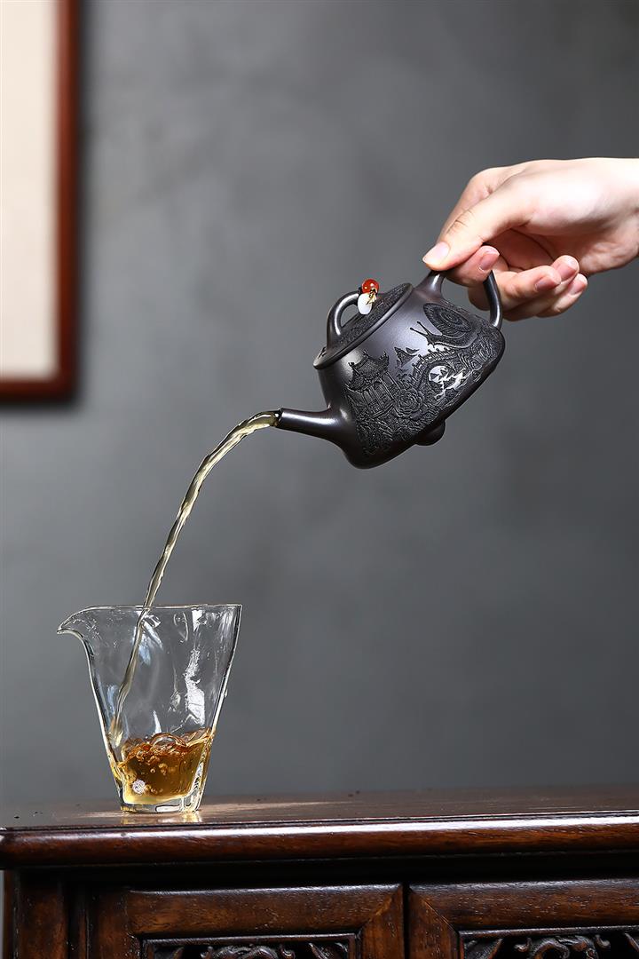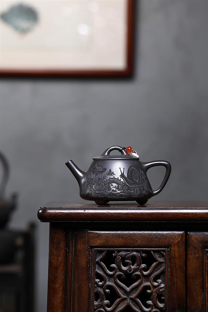 原礦墨綠泥龍鳳齊飛泡茶壺POT7845