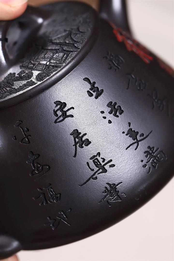 原礦綠泥千裏江山臥虎藏龍漢瓦壺POT7843