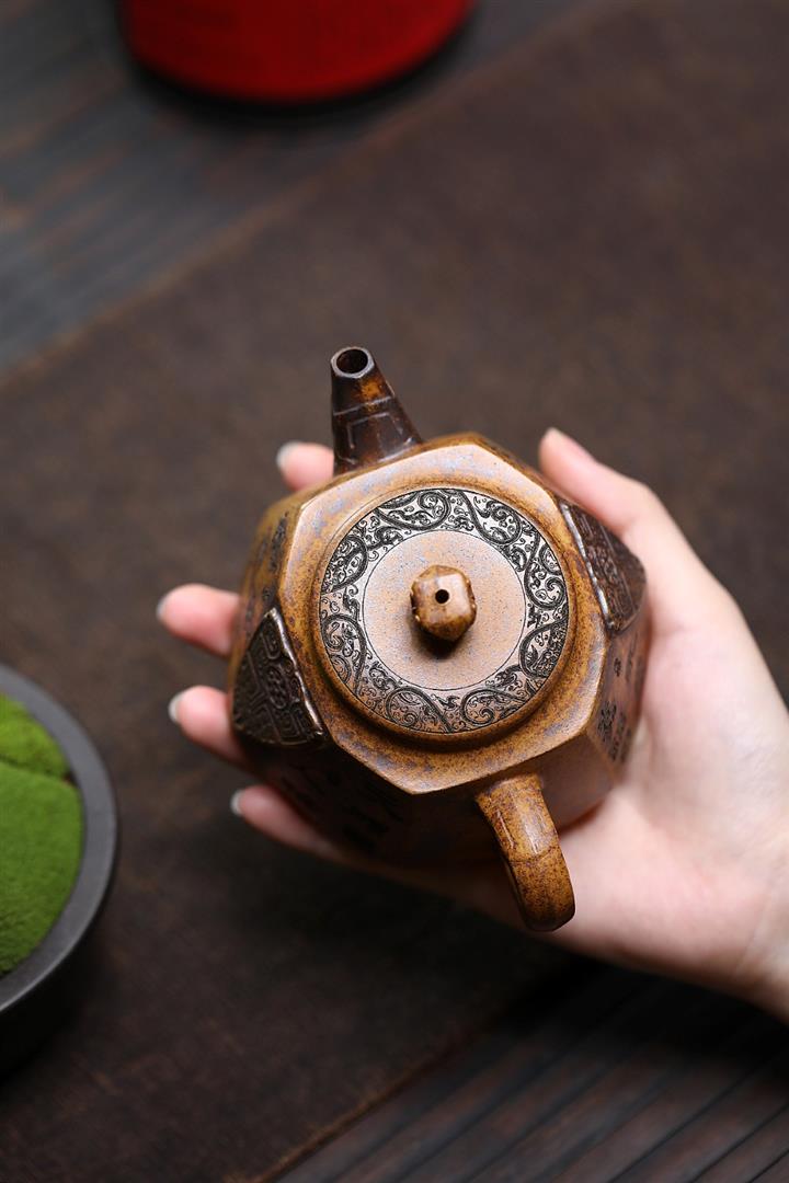 原礦紫泥滿刻納瓢泡茶壺POT7838