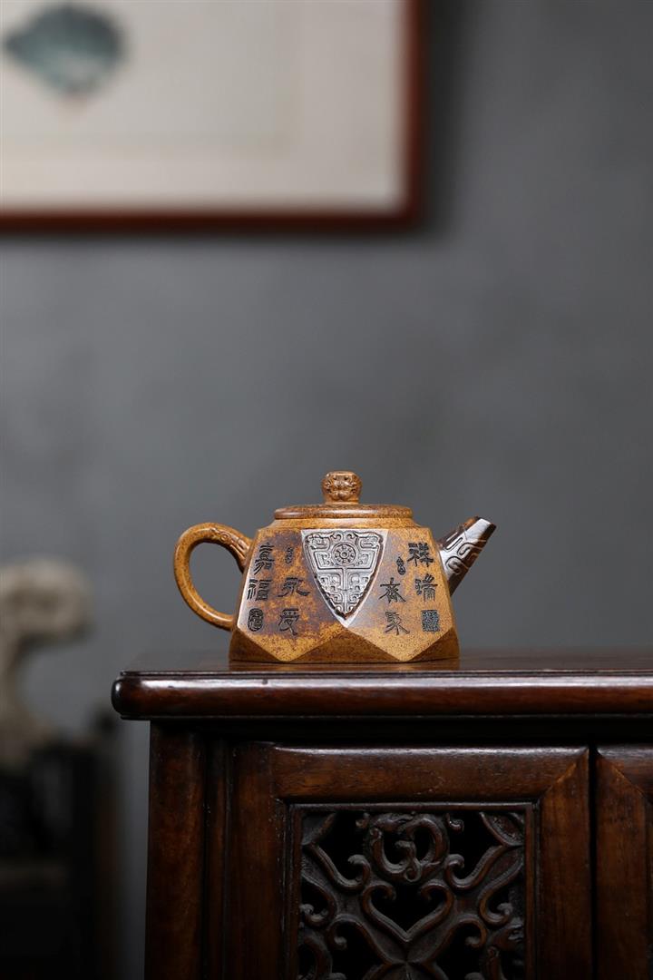 原礦綠泥滿刻三羊開胎茶壺POT7846