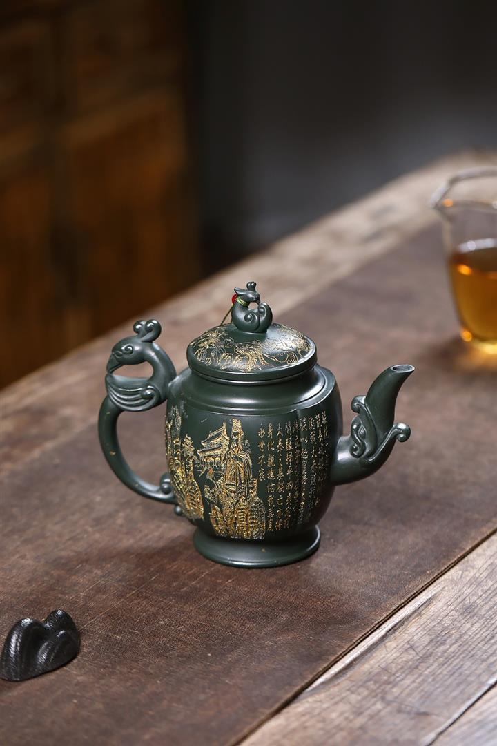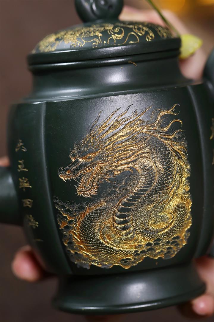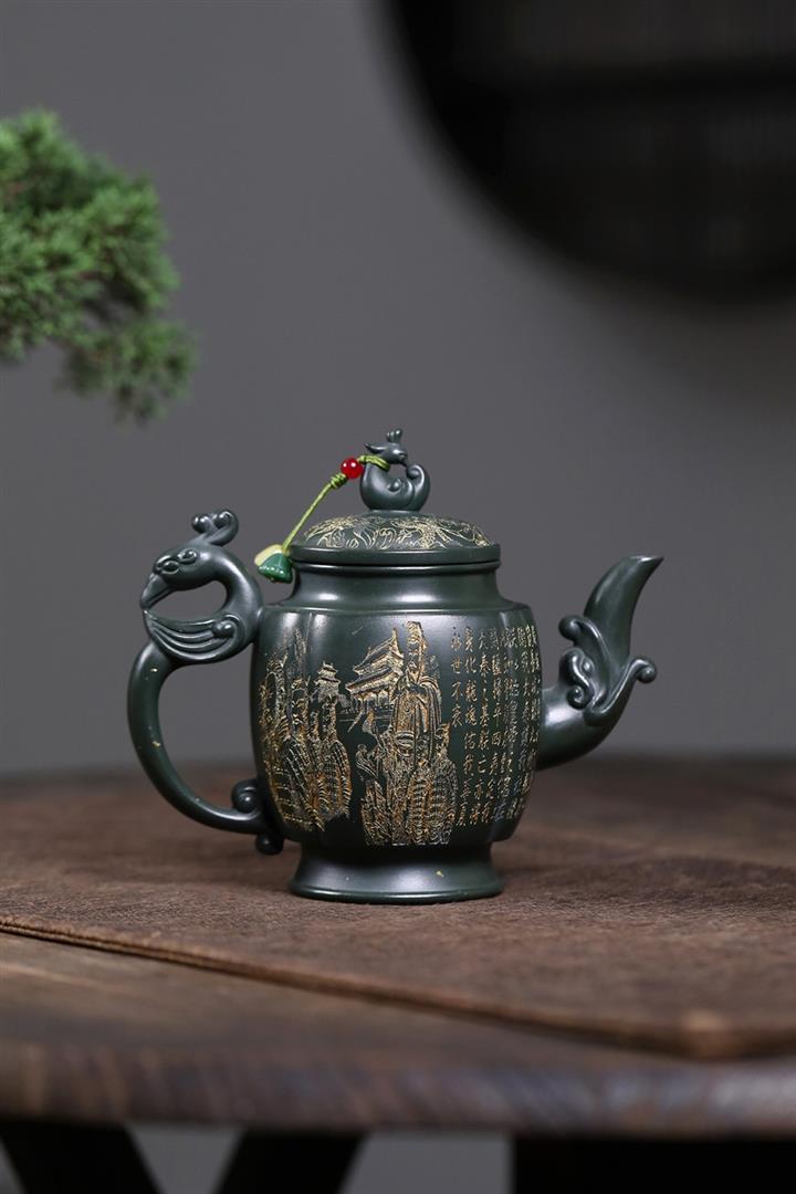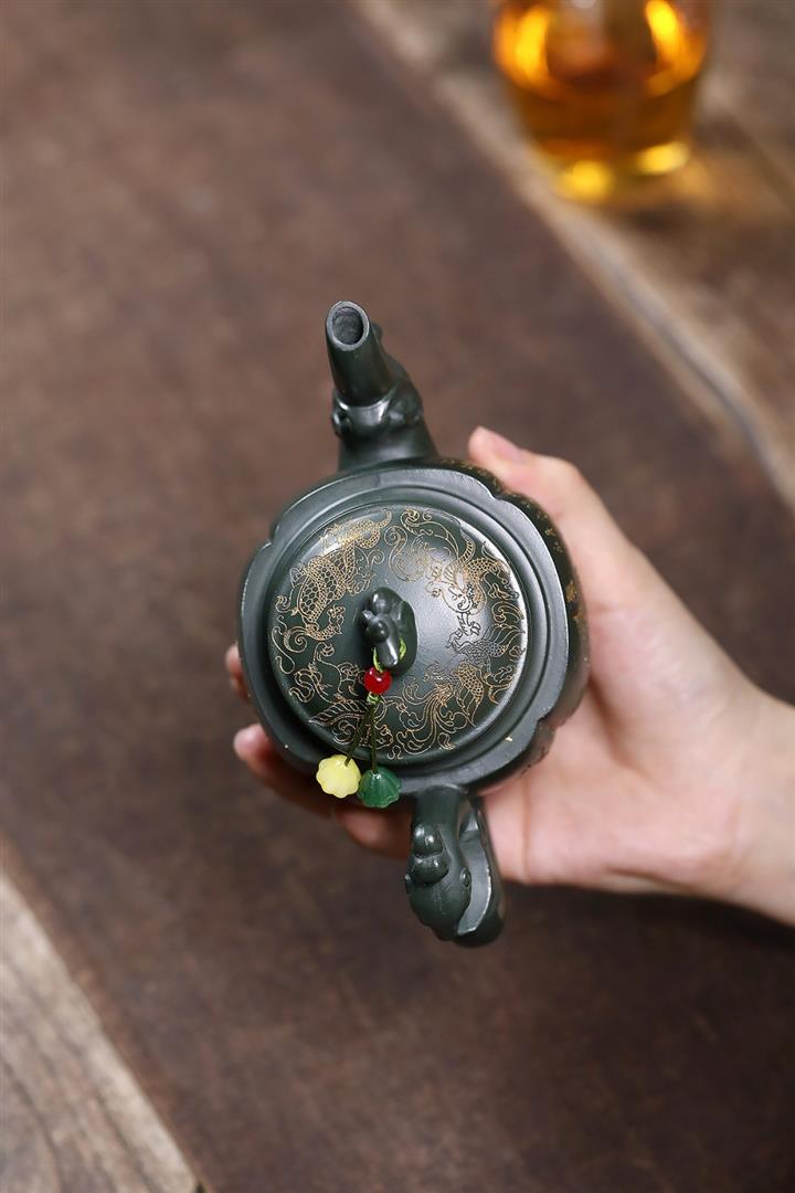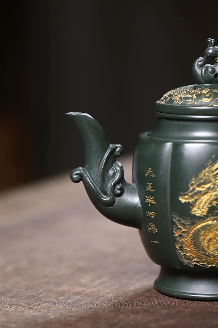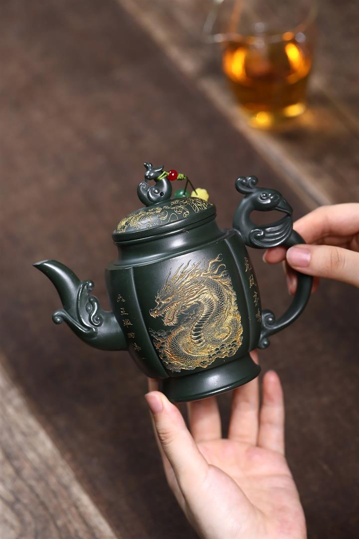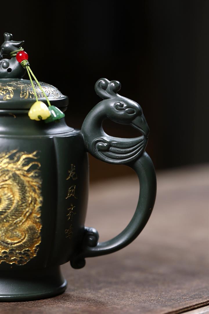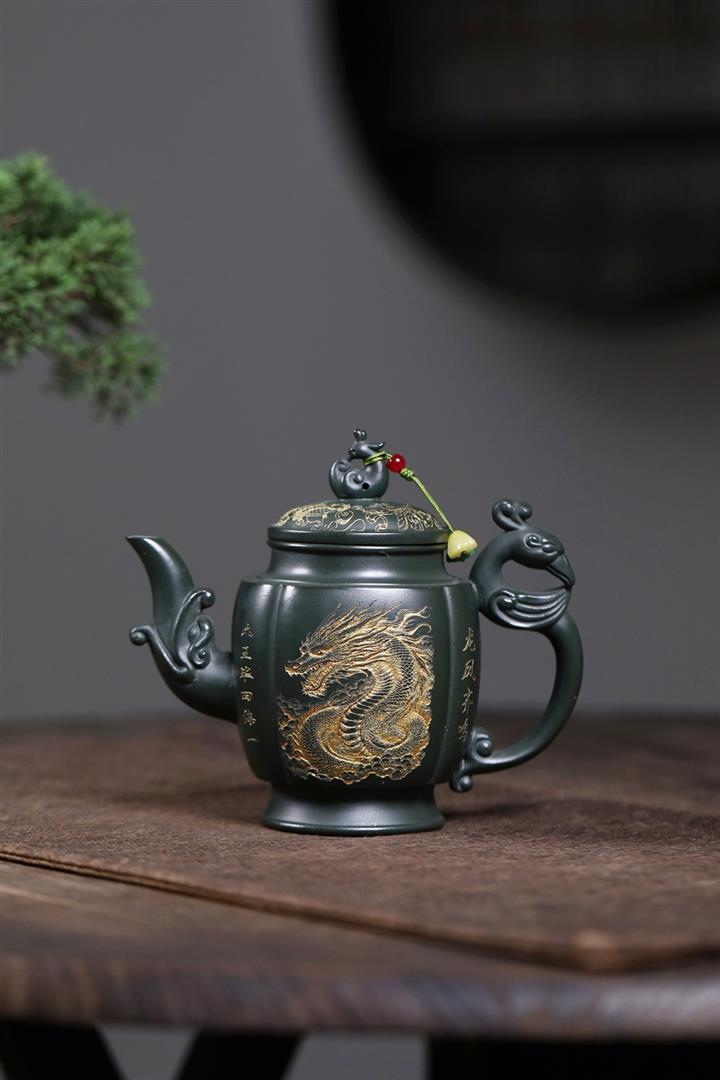 原礦墨綠泥龍鳳齊飛泡茶壺POT7845