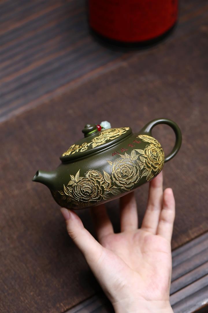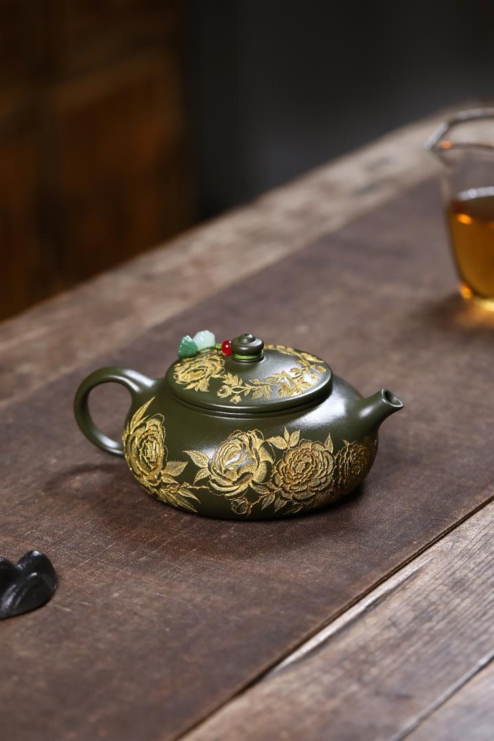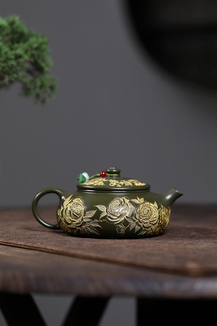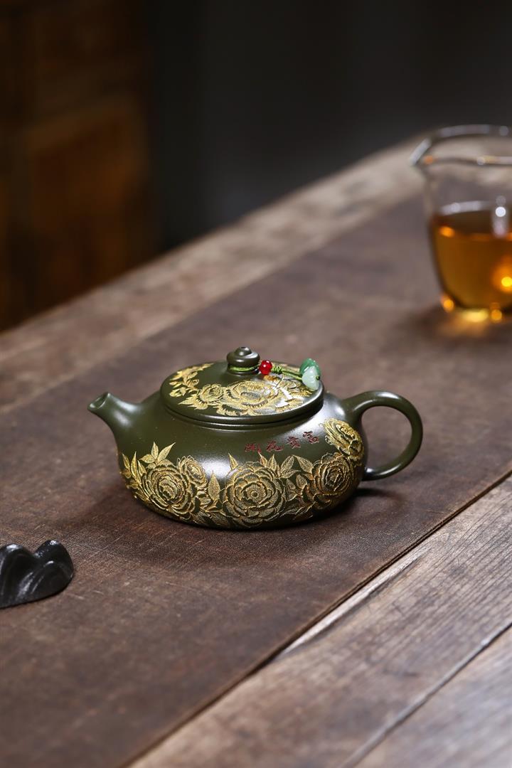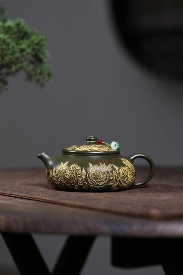 原礦綠泥花開富貴寒江泡茶壺POT7842