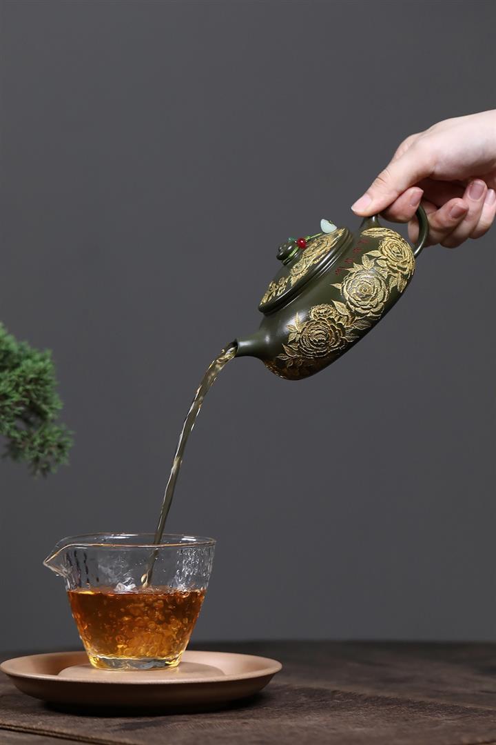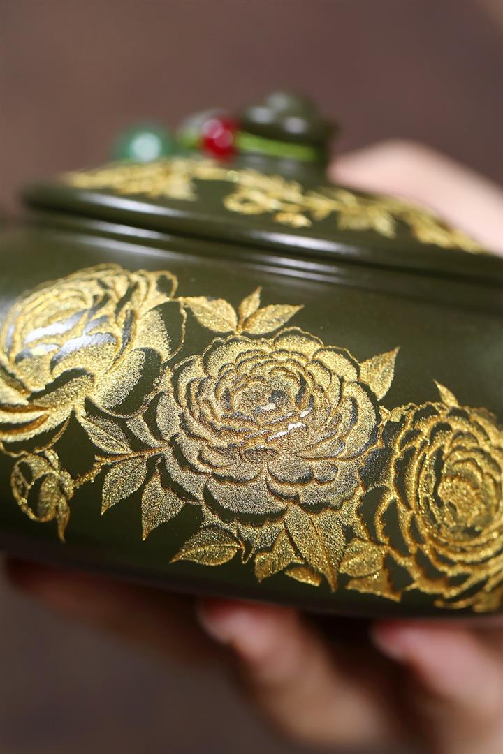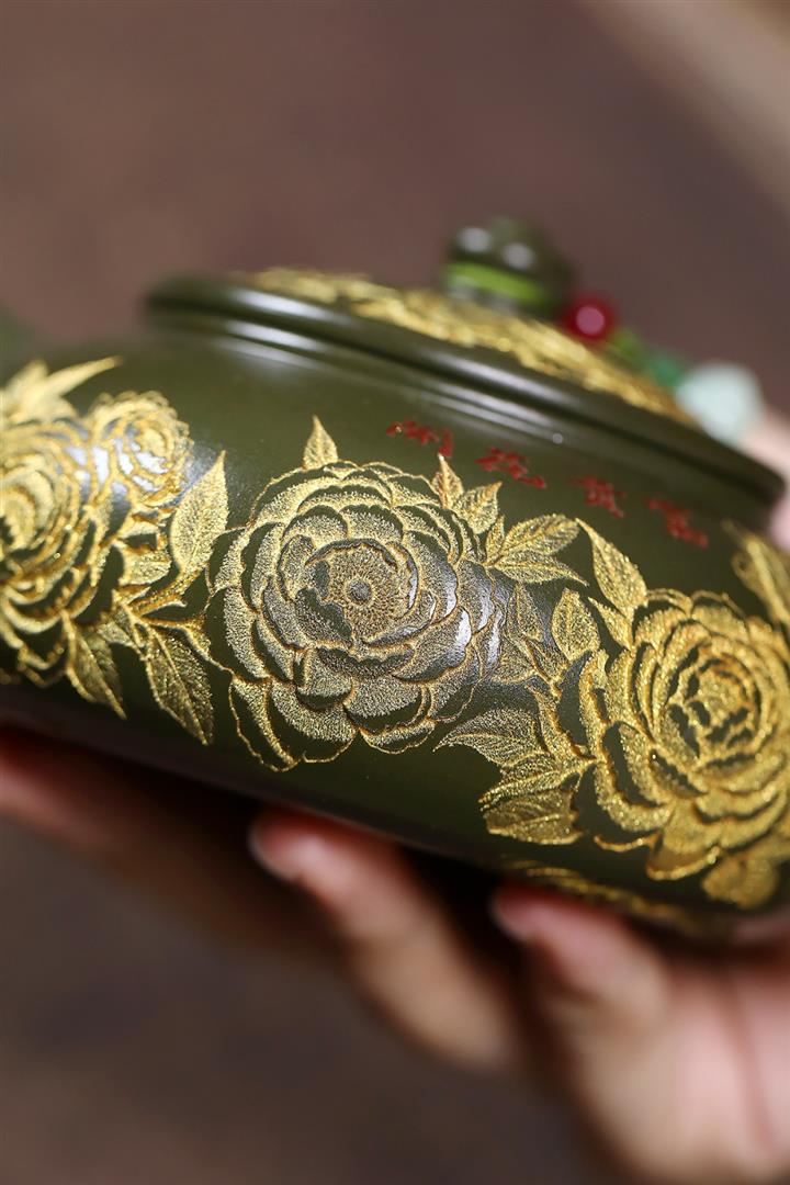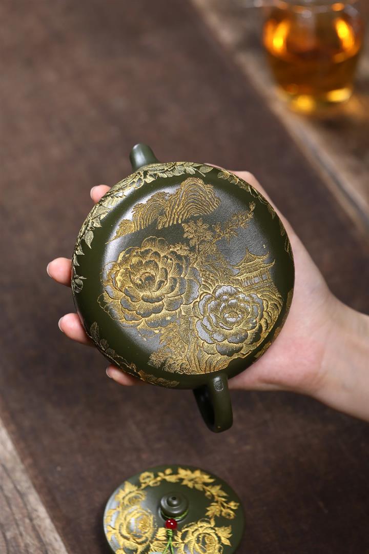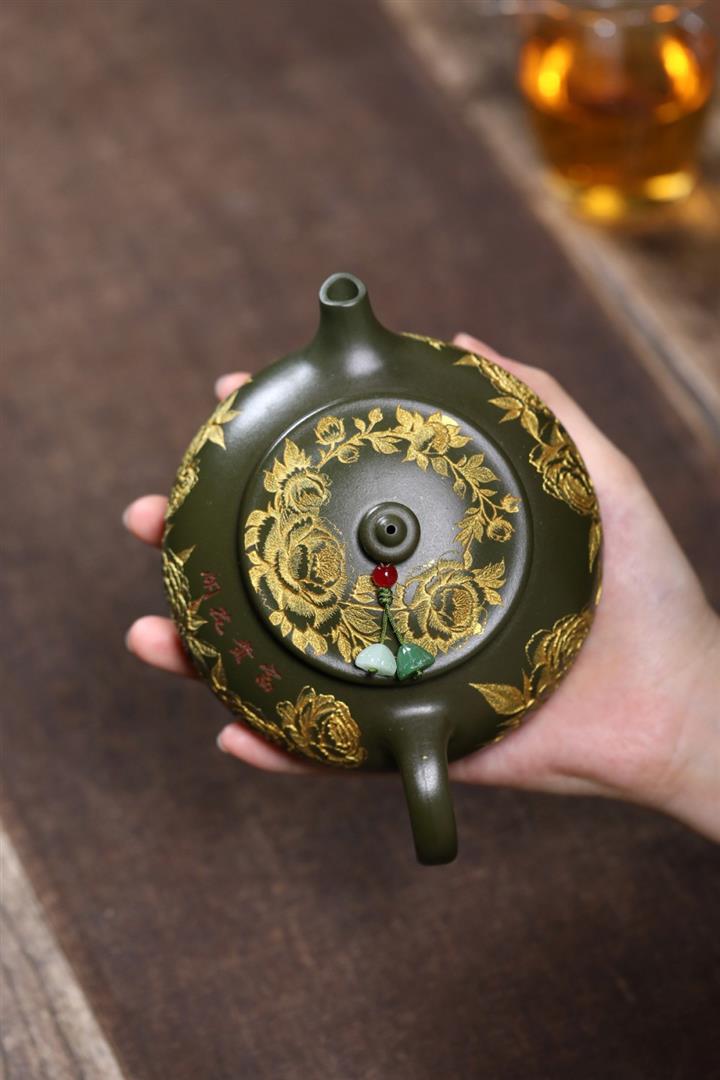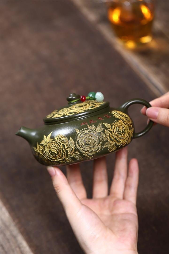 原礦綠泥花開富貴寒江泡茶壺POT7842