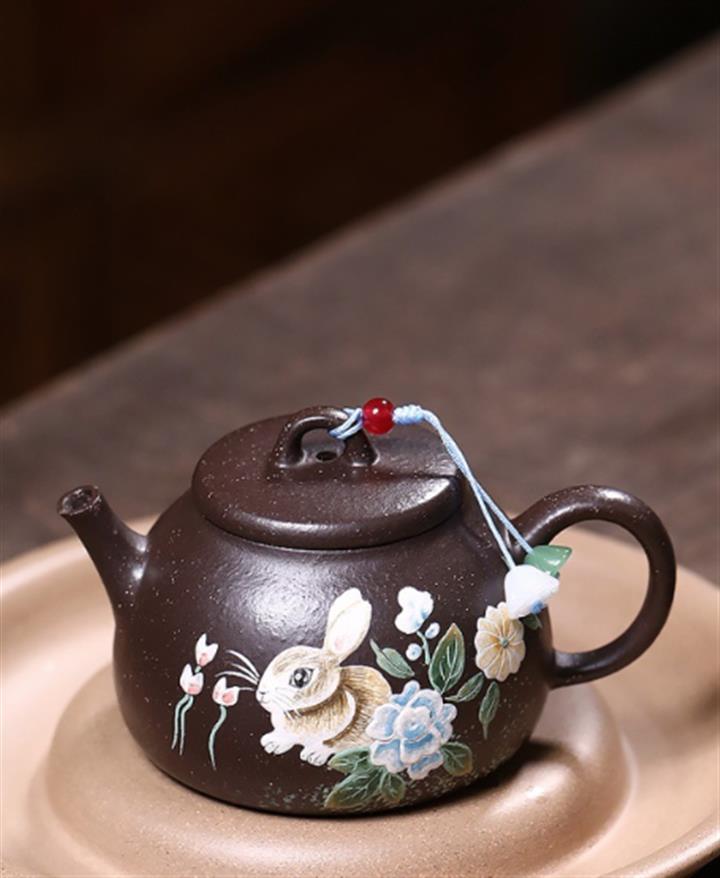 原礦紫玉金砂兔子圓瓦茶壺POT7837
