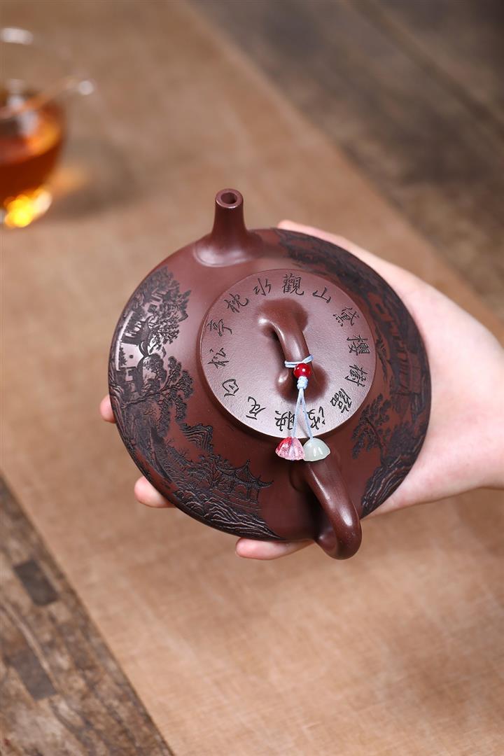 原礦紫泥滿刻納瓢泡茶壺POT7838