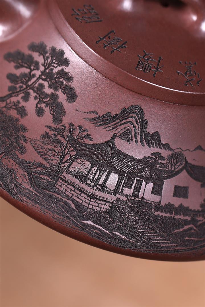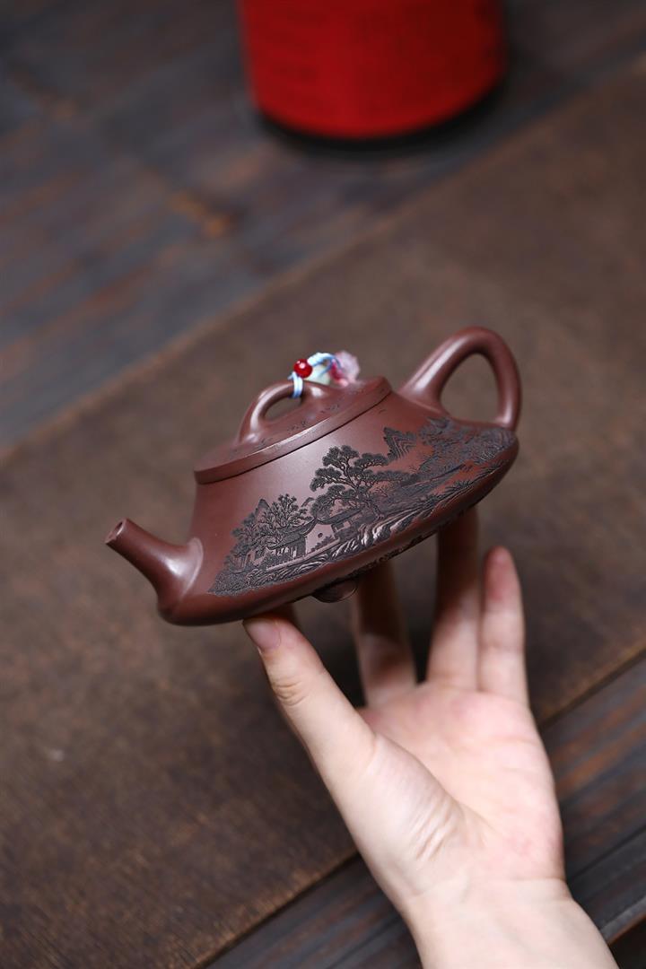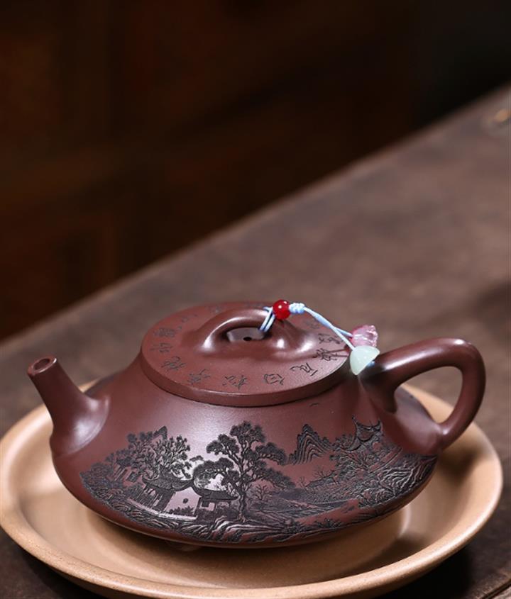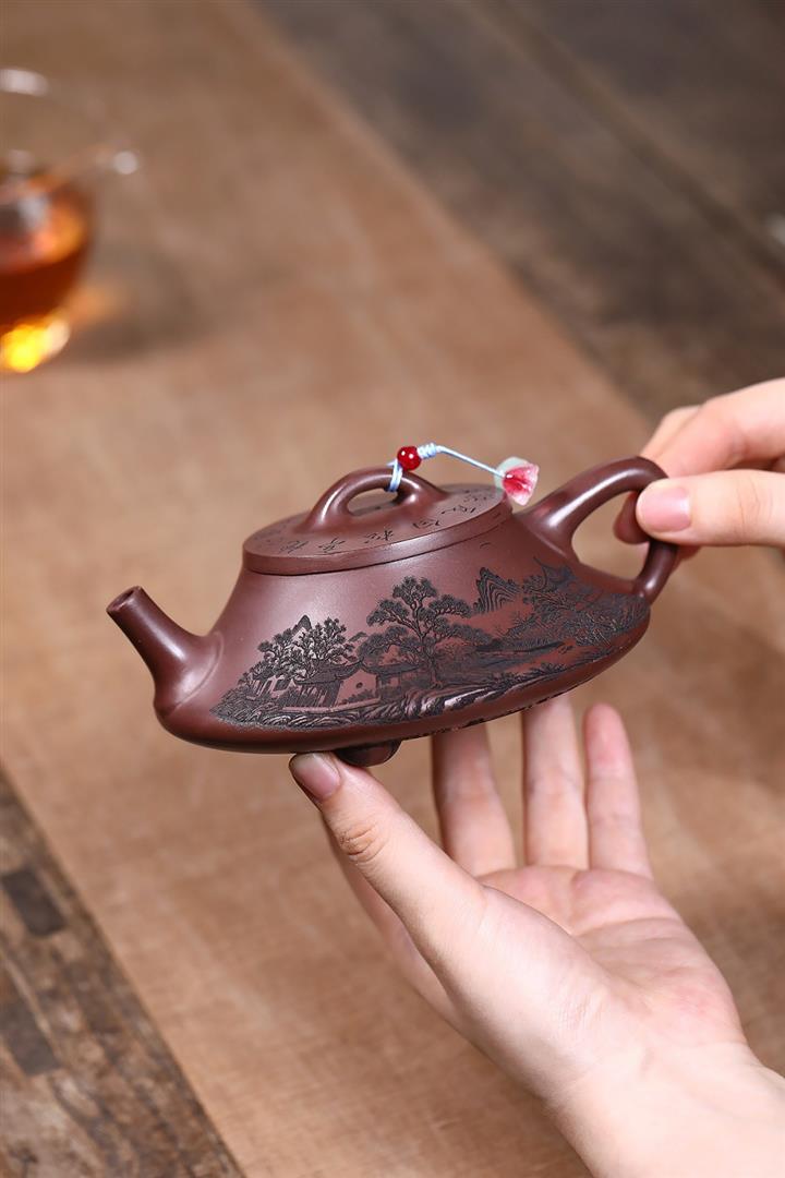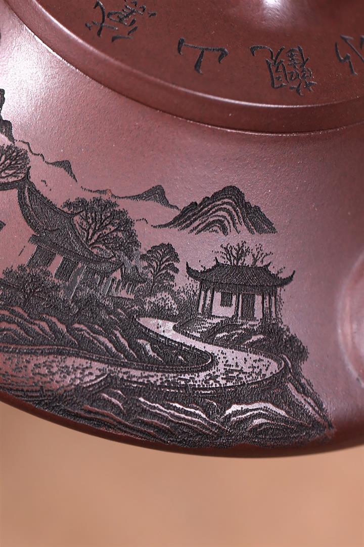 原礦紫泥八方山水石瓢茶壺POT7834