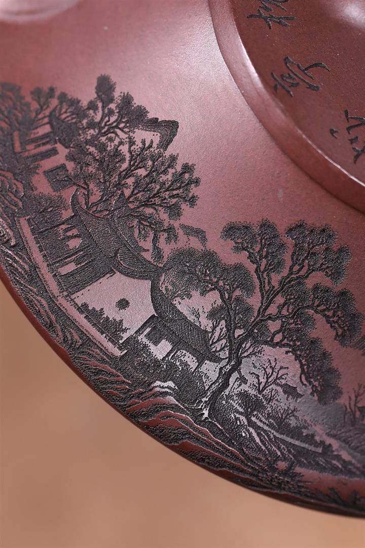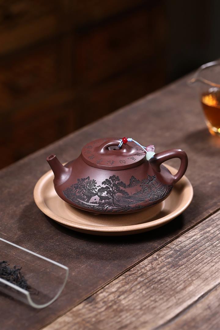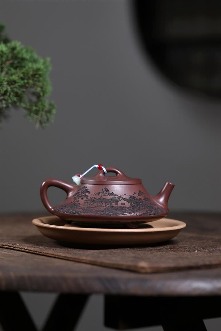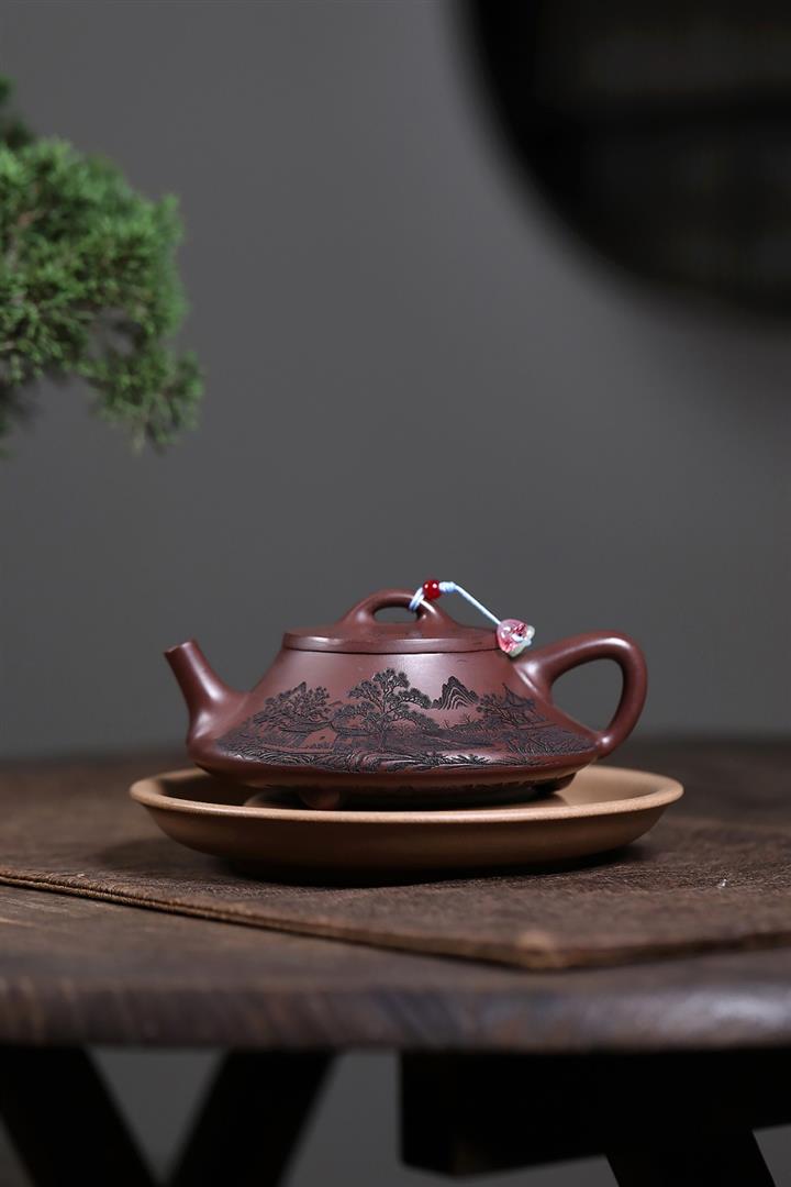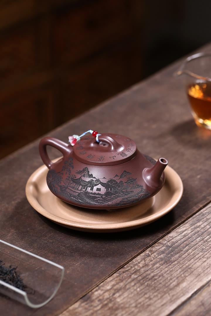 原礦紫泥八方山水石瓢茶壺POT7834