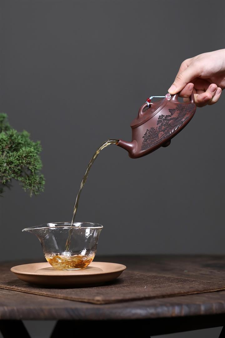 【泥料特點】砂土氣重,似淳實農民,日久使用,漸露鋒芒,養成變化,溫潤莊重。紫砂是壹種雙重氣孔結構的多孔性材質,氣孔微細,密度高。用紫砂壺沏茶,不失原味,且香不渙散,得茶之真香真味。紫砂使用越久,壺身色澤越發光亮照人,氣韻溫雅。紫砂壺長久使用器身會因撫摸擦拭,變得越發溫潤光澤。