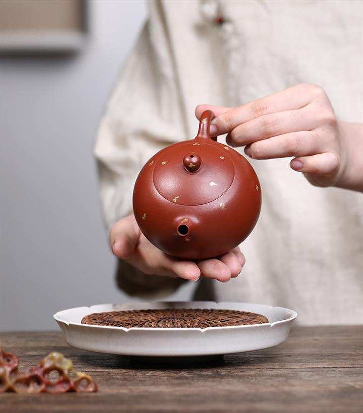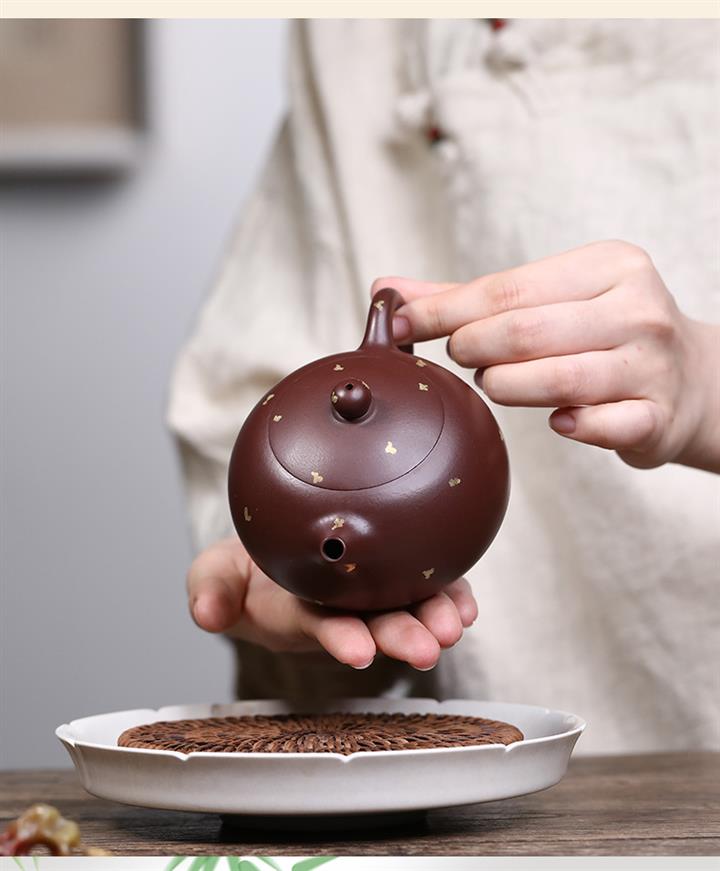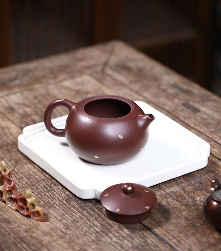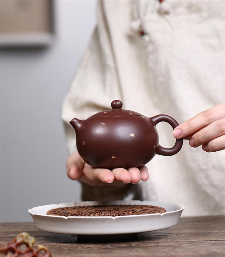 【泥料特點】砂土氣重,似淳實農民,日久使用,漸露鋒芒,養成變化,溫潤莊重。紫砂是壹種雙重氣孔結構的多孔性材質,氣孔微細,密度高。用紫砂壺沏茶,不失原味,且香不渙散,得茶之真香真味。紫砂使用越久,壺身色澤越發光亮照人,氣韻溫雅。紫砂壺長久使用器身會因撫摸擦拭,變得越發溫潤光澤。