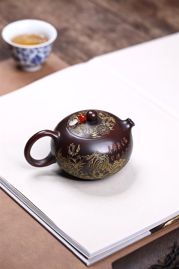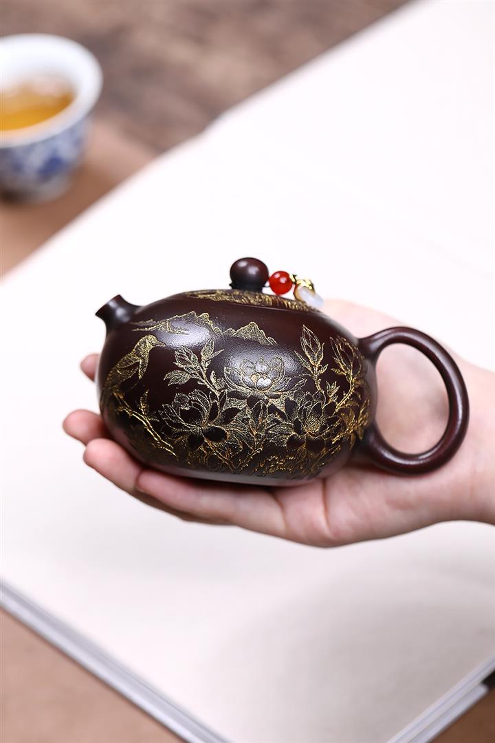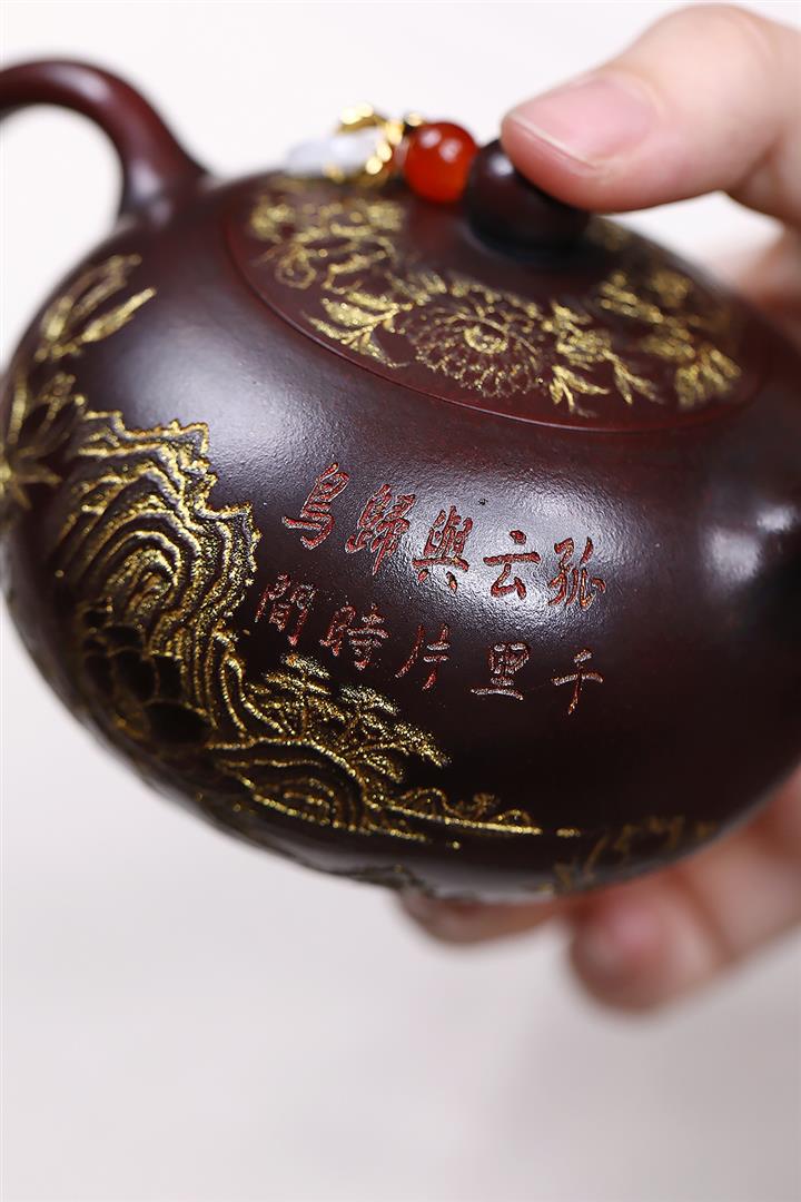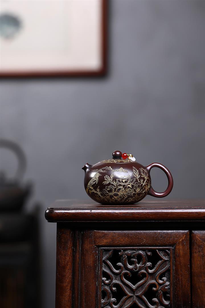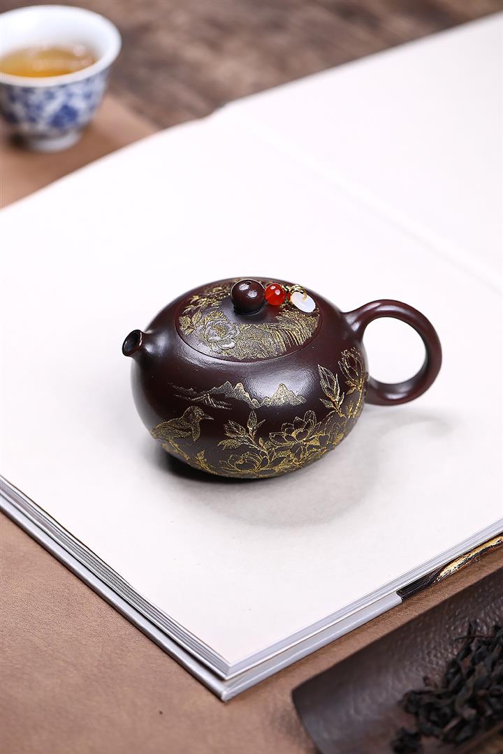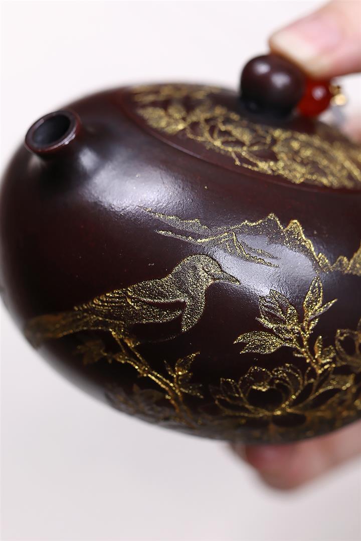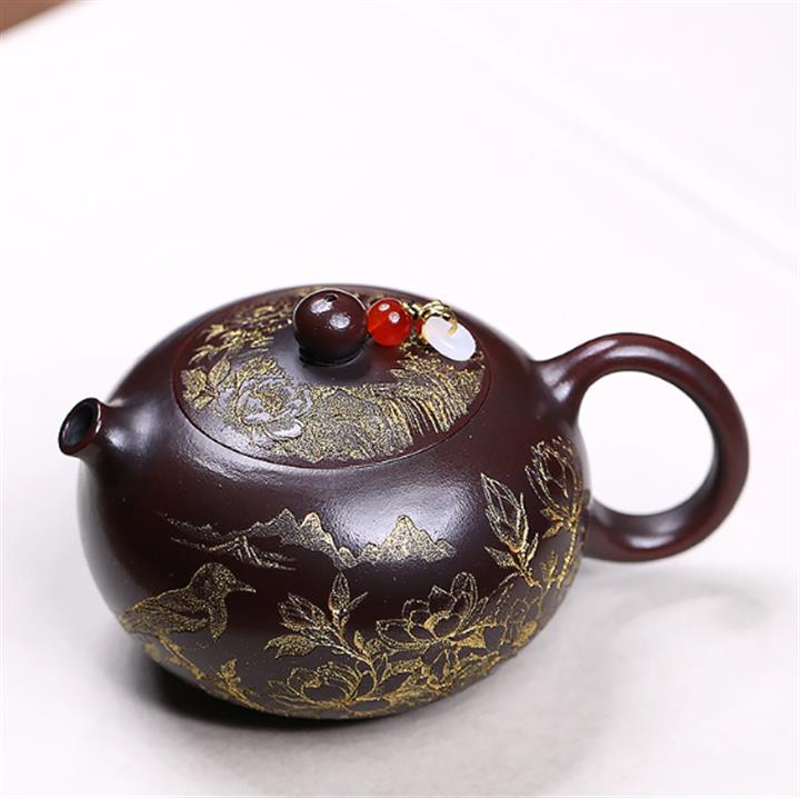 原礦古烏泥滿刻花鳥西施茶壺POT7817