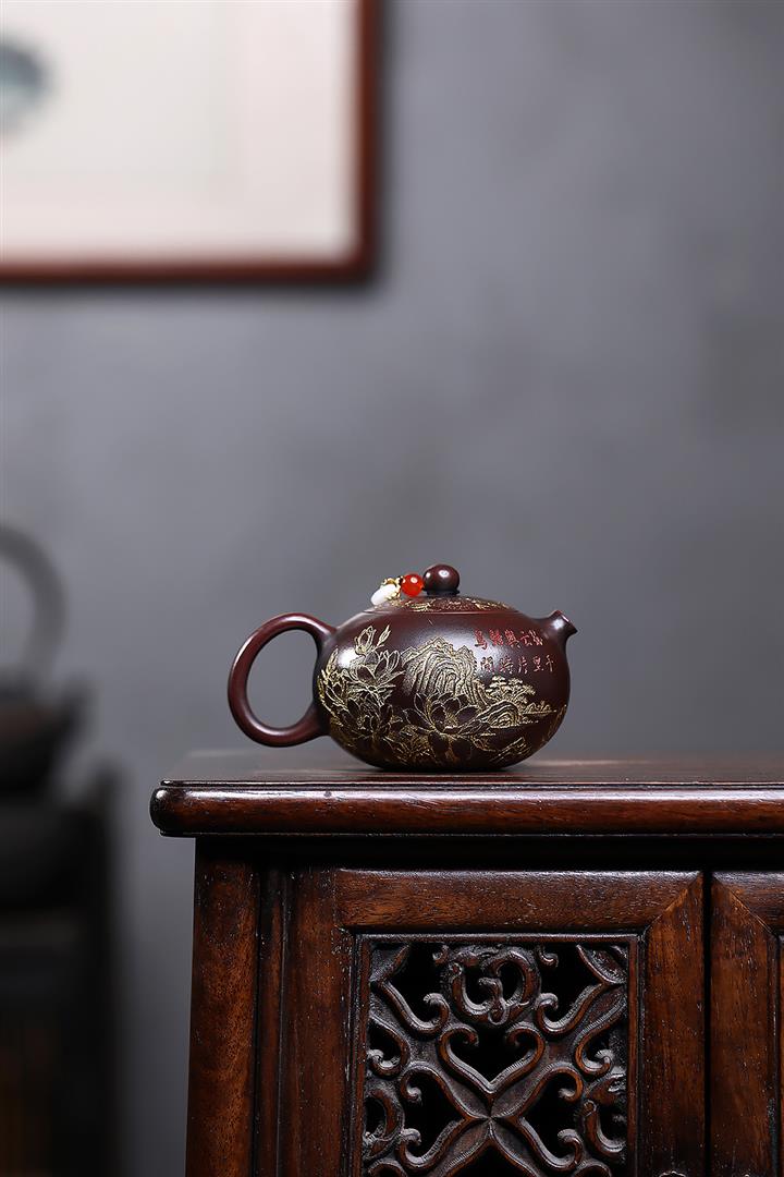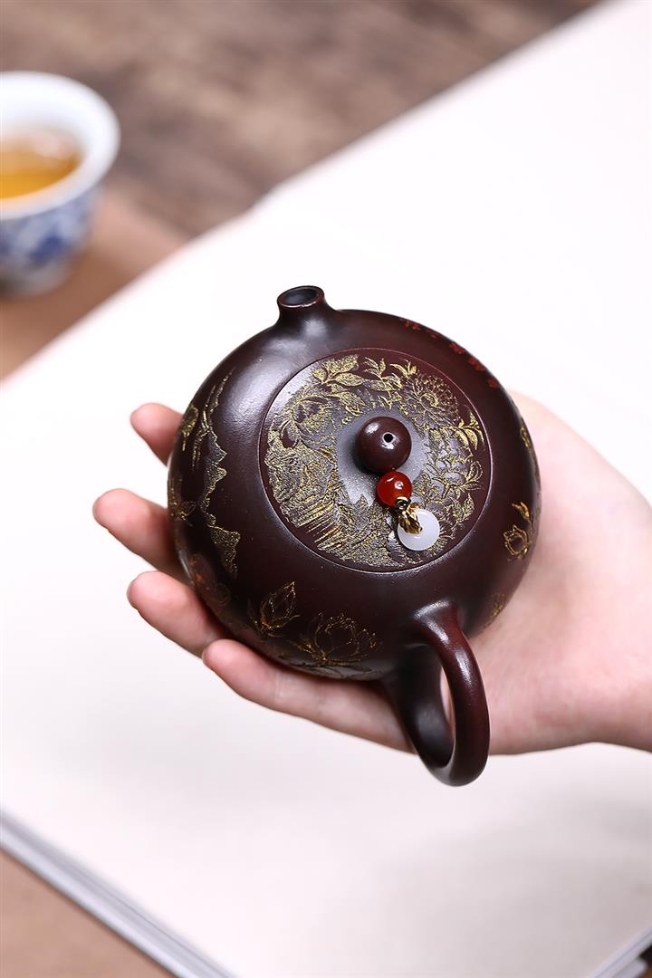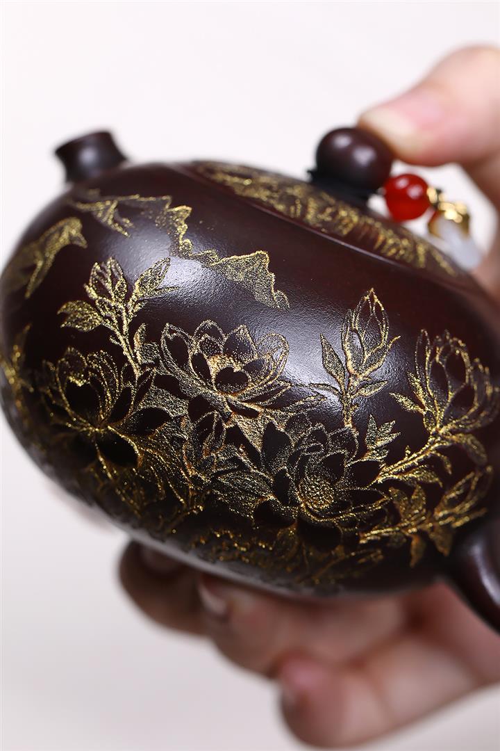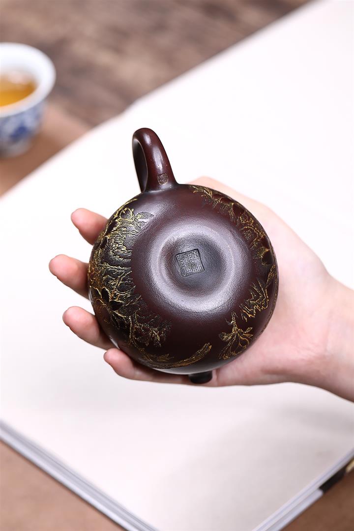 原礦百目紫泥描金文人掇只茶壺POT7814