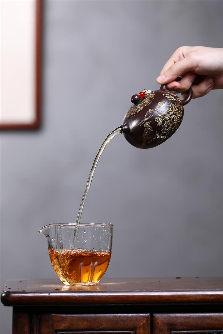 【泥料特點】砂土氣重,似淳實農民,日久使用,漸露鋒芒,養成變化,溫潤莊重。紫砂是壹種雙重氣孔結構的多孔性材質,氣孔微細,密度高。用紫砂壺沏茶,不失原味,且香不渙散,得茶之真香真味。紫砂使用越久,壺身色澤越發光亮照人,氣韻溫雅。紫砂壺長久使用器身會因撫摸擦拭,變得越發溫潤光澤。