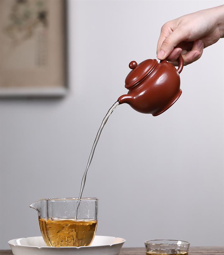 【泥料特點】砂土氣重,似淳實農民,日久使用,漸露鋒芒,養成變化,溫潤莊重。紫砂是壹種雙重氣孔結構的多孔性材質,氣孔微細,密度高。用紫砂壺沏茶,不失原味,且香不渙散,得茶之真香真味。紫砂使用越久,壺身色澤越發光亮照人,氣韻溫雅。紫砂壺長久使用器身會因撫摸擦拭,變得越發溫潤光澤。