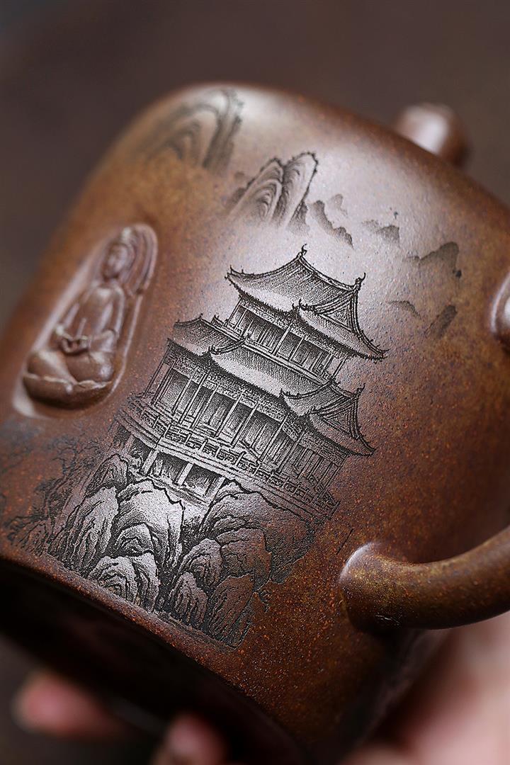 【作品介紹】作品深蘊內涵,做工細致典雅,型用完備,器形端莊穩重,比例協調,結構嚴謹,泥色潤澤。