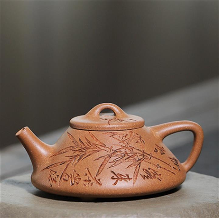 原礦降坡.紫泥竹葉子冶石瓢壺POT7709