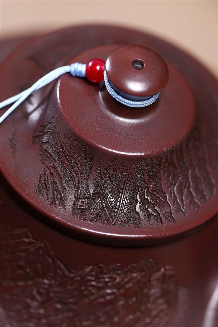 【泥料特點】砂土氣重,似淳實農民,日久使用,漸露鋒芒,養成變化,溫潤莊重。紫砂是壹種雙重氣孔結構的多孔性材質,氣孔微細,密度高。用紫砂壺沏茶,不失原味,且香不渙散,得茶之真香真味。紫砂使用越久,壺身色澤越發光亮照人,氣韻溫雅。紫砂壺長久使用器身會因撫摸擦拭,變得越發溫潤光澤。