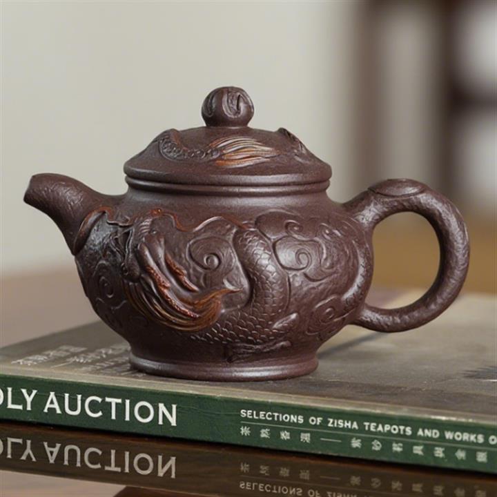 250cc原礦老紫泥浮雕祥龍戲珠茶壺POT7937