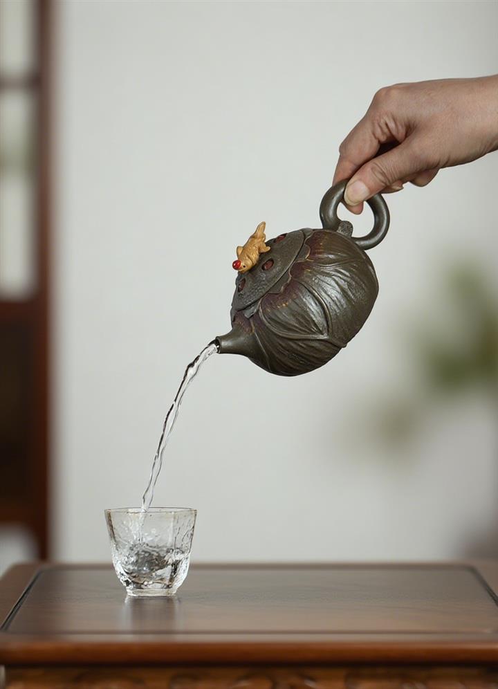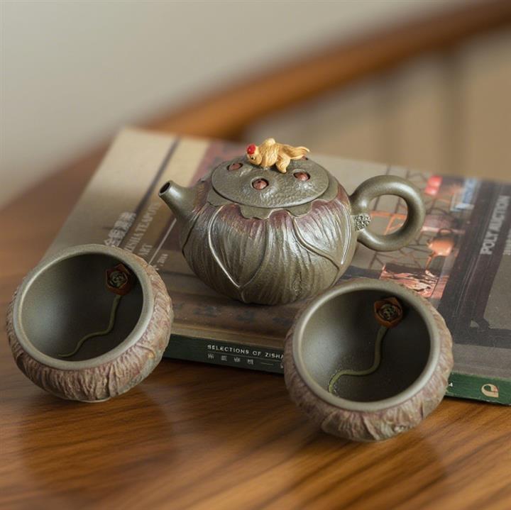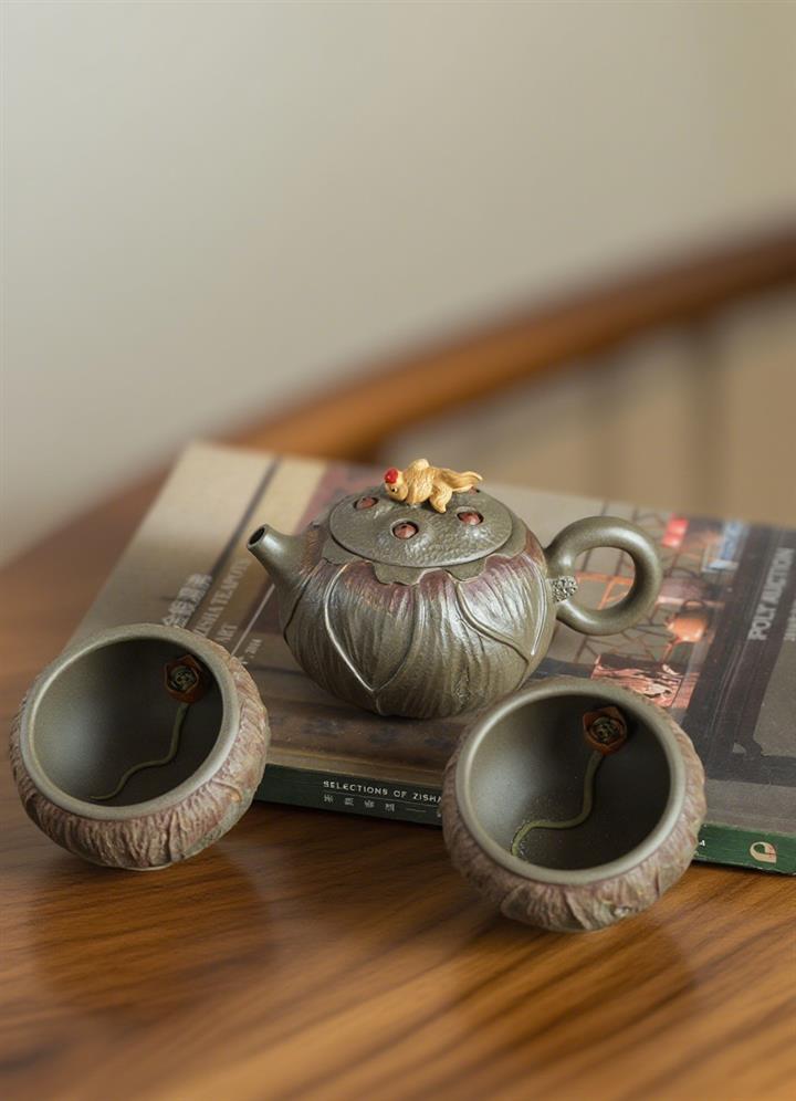 150cc原礦紫泥連年有余荷趣茶壺POT7954