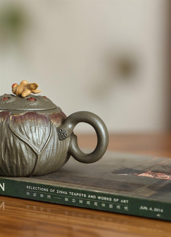 200cc原礦青段泥魚戲荷葉茶壺POT7944