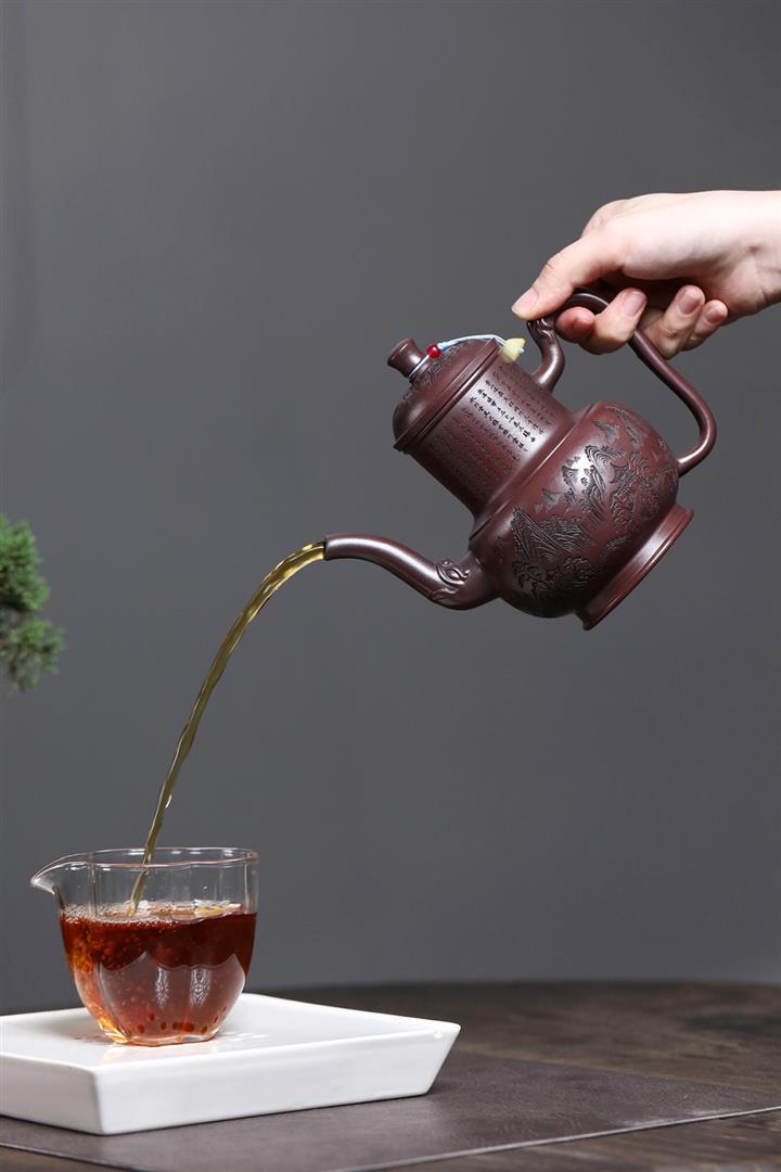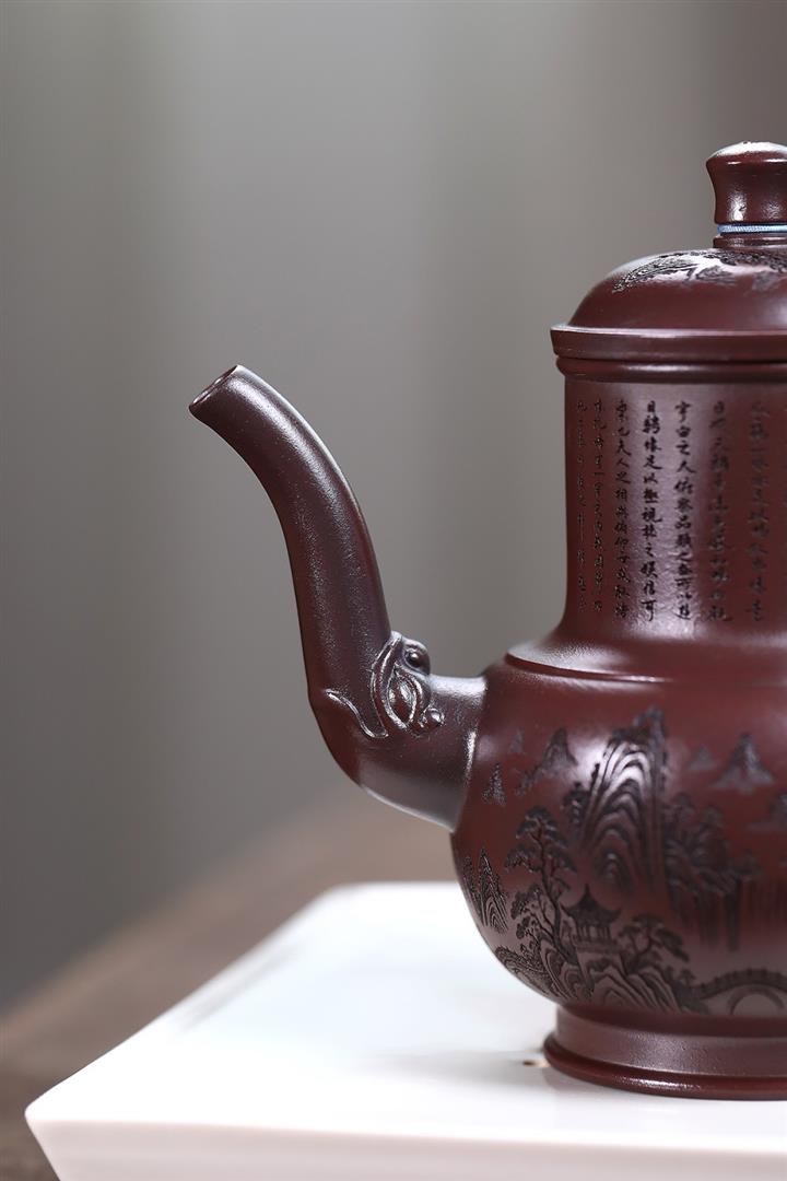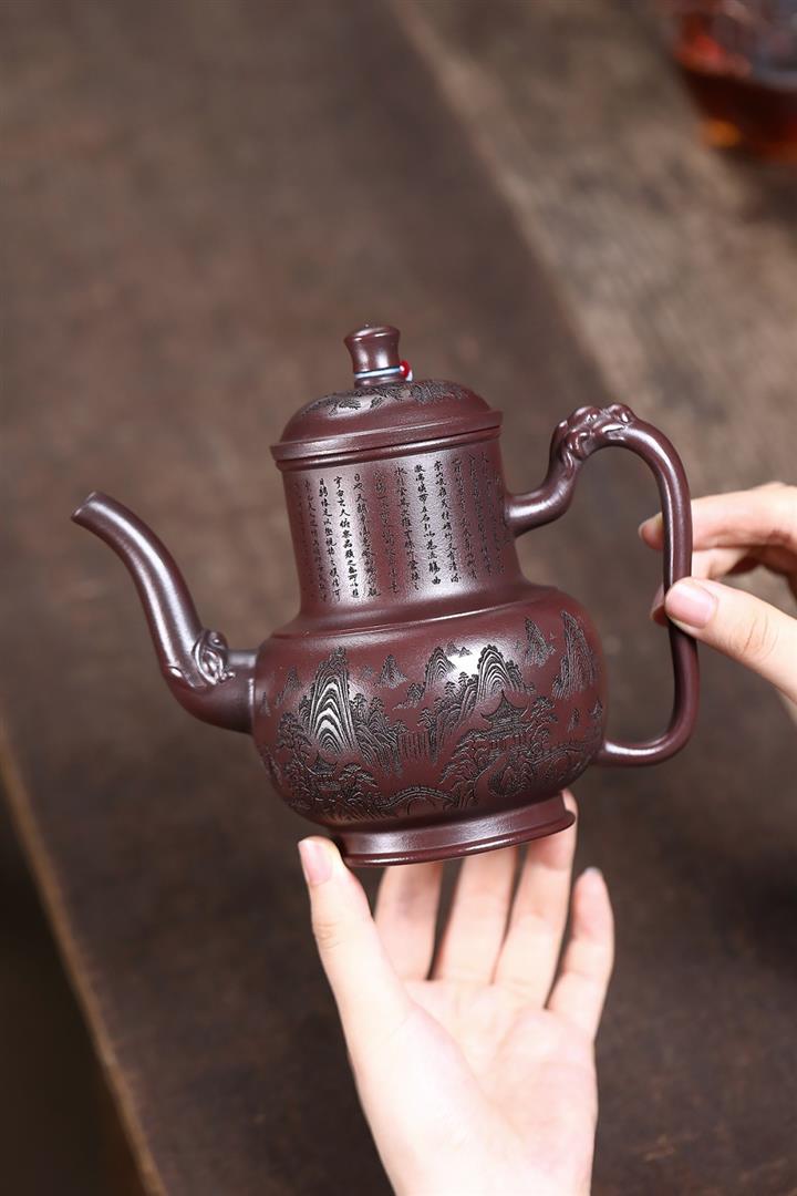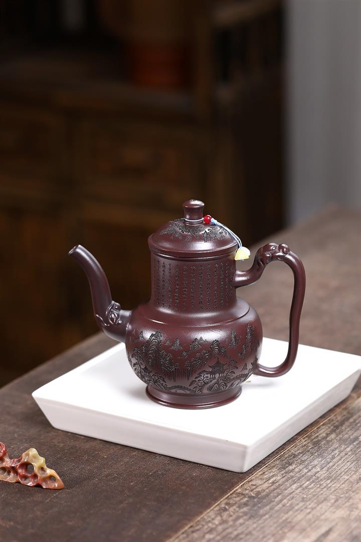 【作品介紹】此款壺形線條流暢,壺把,壺嘴,壺身壹氣呵成栩栩如生,是收藏把玩的好壺,泥料色澤古樸典雅,日久使用,漸露鋒芒,養成變化快,溫潤莊重,用其泡茶,使用的年代久,壺身就溫潤,泡出來的茶湯也就醇郁芳馨。