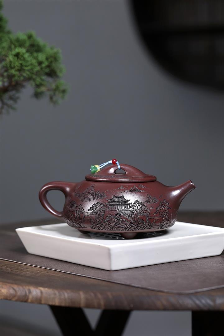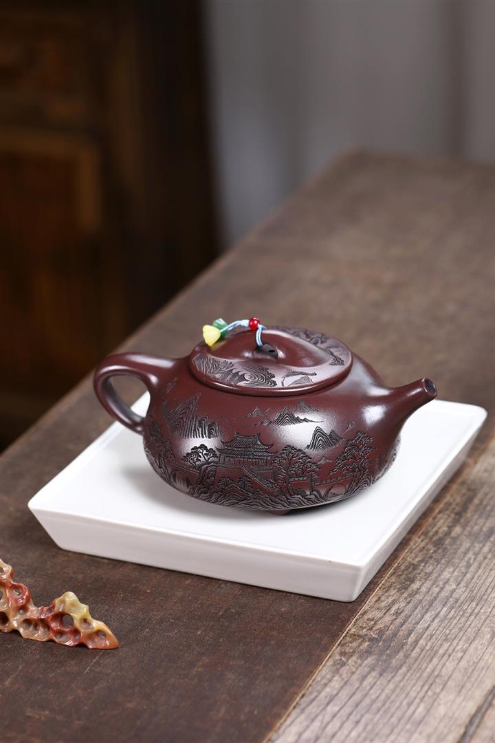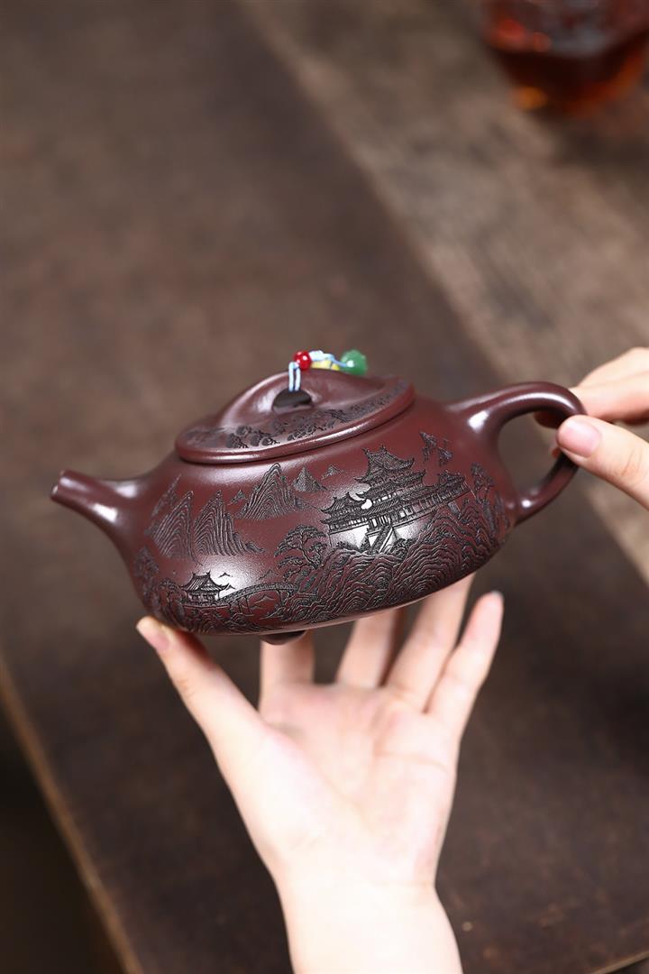 【作品介紹】此款壺形線條流暢,壺把,壺嘴,壺身壹氣呵成栩栩如生,是收藏把玩的好壺,泥料色澤古樸典雅,日久使用,漸露鋒芒,養成變化快,溫潤莊重,用其泡茶,使用的年代久,壺身就溫潤,泡出來的茶湯也就醇郁芳馨。