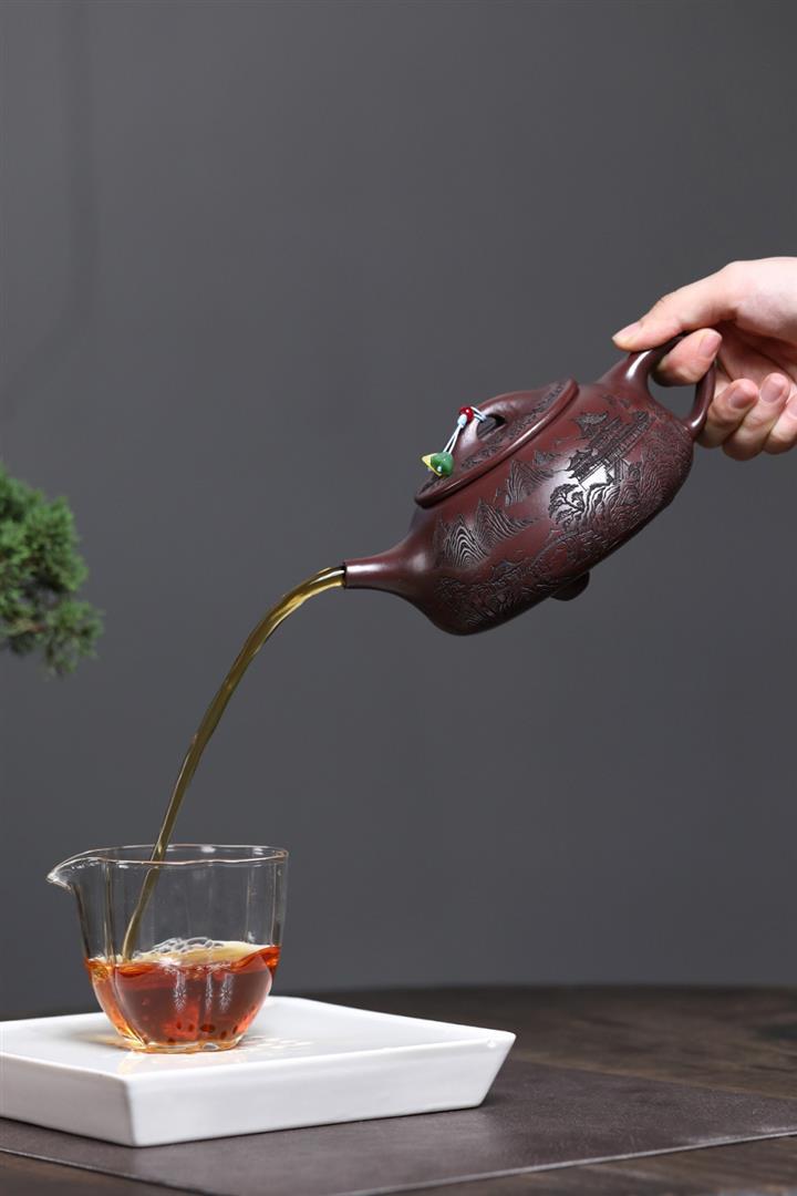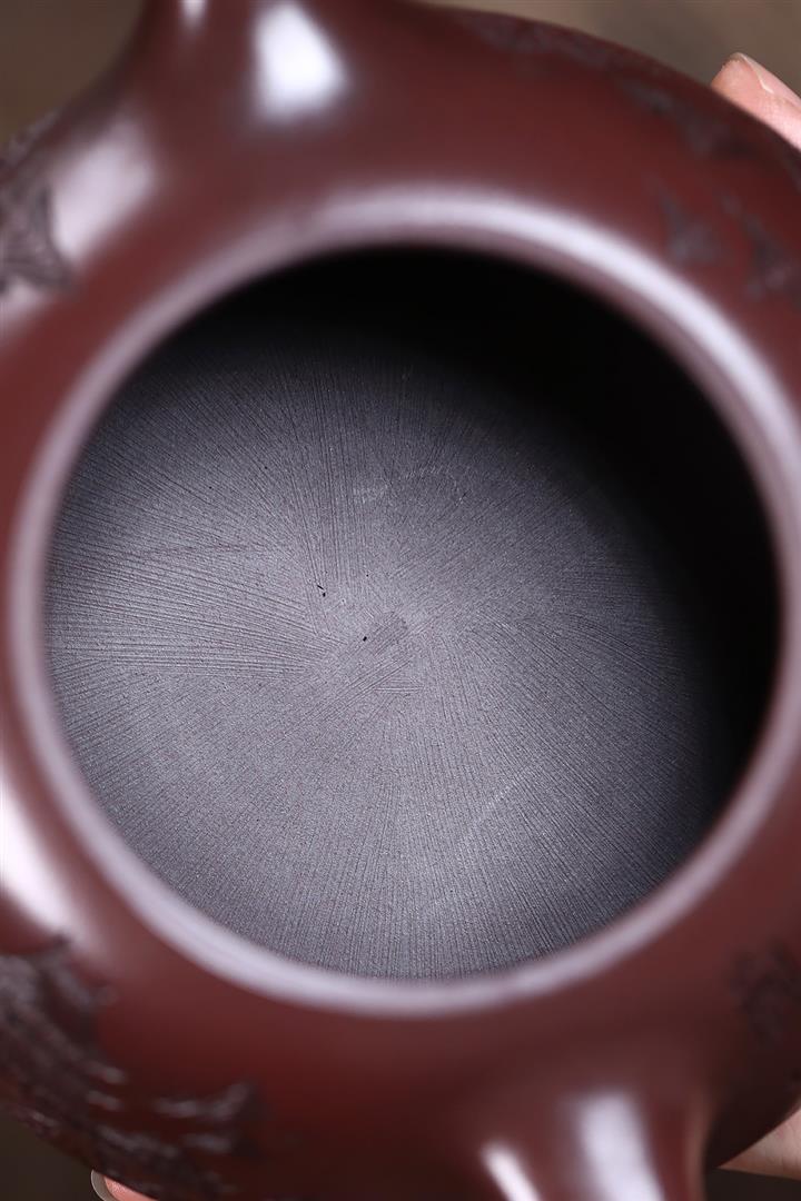 【泥料特點】砂土氣重,似淳實農民,日久使用,漸露鋒芒,養成變化,溫潤莊重。紫砂是壹種雙重氣孔結構的多孔性材質,氣孔微細,密度高。用紫砂壺沏茶,不失原味,且香不渙散,得茶之真香真味。紫砂使用越久,壺身色澤越發光亮照人,氣韻溫雅。紫砂壺長久使用器身會因撫摸擦拭,變得越發溫潤光澤。