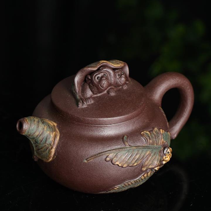 150cc原礦紫泥連年有余荷趣茶壺POT7954