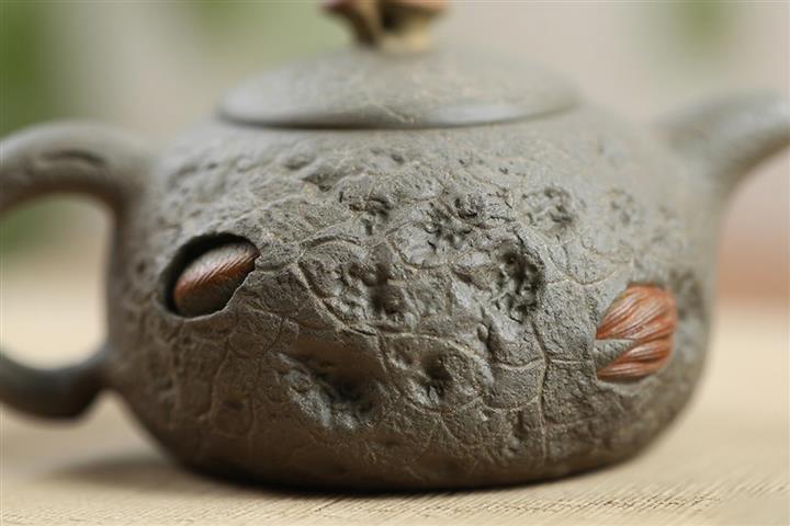 【泥料特點】砂土氣重,似淳實農民,日久使用,漸露鋒芒,養成變化,溫潤莊重。紫砂是壹種雙重氣孔結構的多孔性材質,氣孔微細,密度高。用紫砂壺沏茶,不失原味,且香不渙散,得茶之真香真味。紫砂使用越久,壺身色澤越發光亮照人,氣韻溫雅。紫砂壺長久使用器身會因撫摸擦拭,變得越發溫潤光澤。